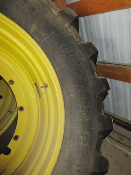 (4) Row Crop Tires/Rims (DR2914), (4) row crop sprayer tires, 620/70R46 mounted on rims.
