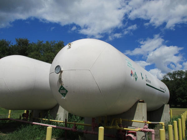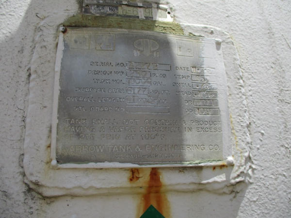 1967 Arrow Tank NH3 Storage Tank (DR2929), 18,000 gallon Nh3 storage tank, on magnetic float gauge, data tag, 3" Corken pump, electric motor, concrete saddles.