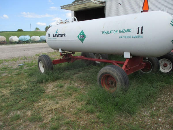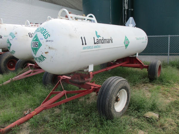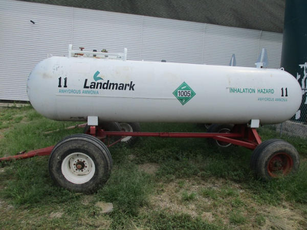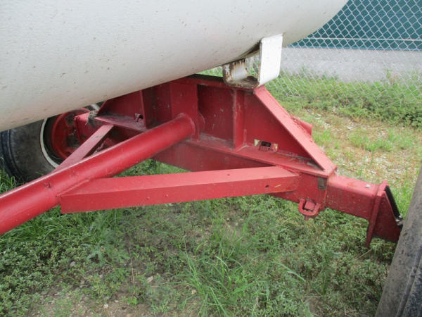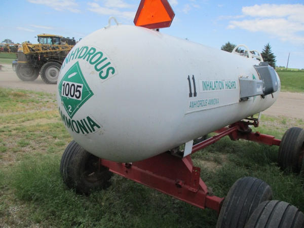 Nh3 Nurse Tank (DR2933 Unit 11), 1000 gallon tank, top front fill, data tag, 5th wheel style running gear, adjustable axles, 12.5L-15 tires.
