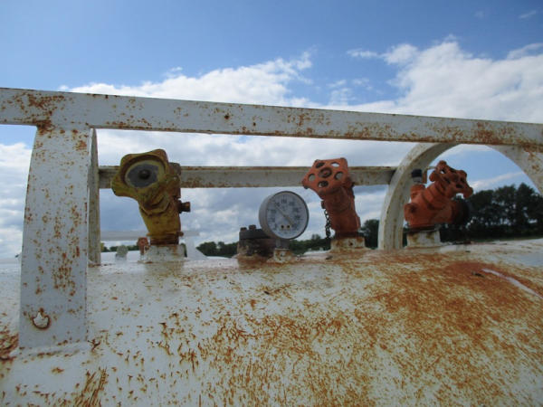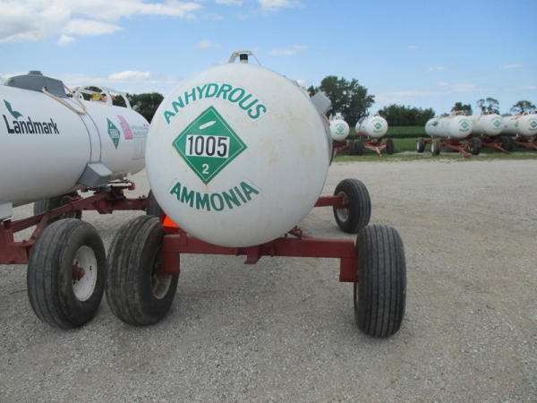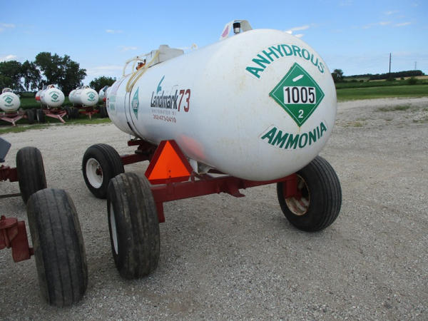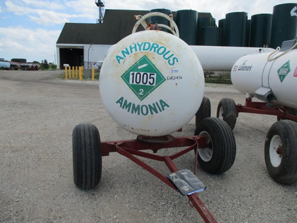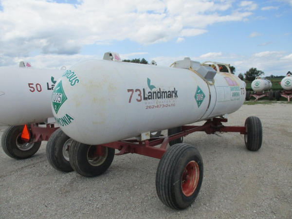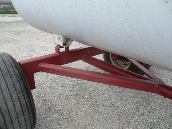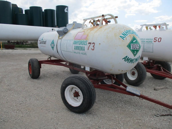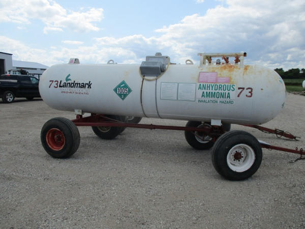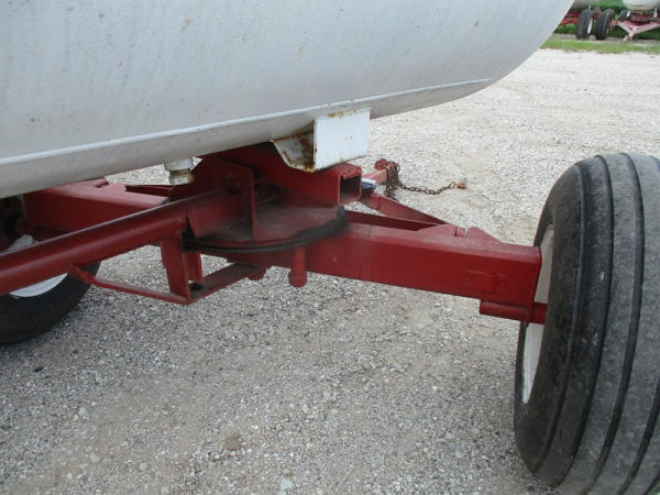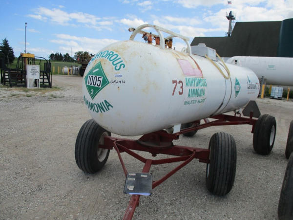 Nh3 Nurse Tank (DR2936 Unit 73), 1000 gallon tank, top front fill, data tag, 5th wheel style running gear, rear hitch, 11L-15 tires.