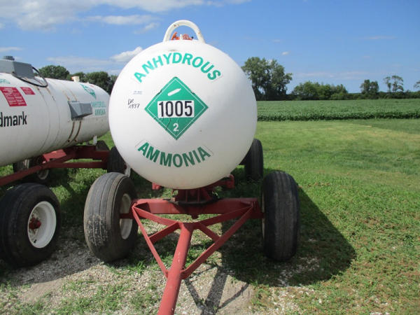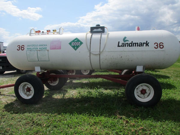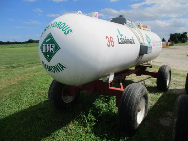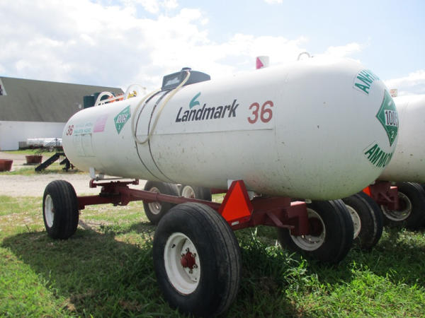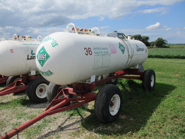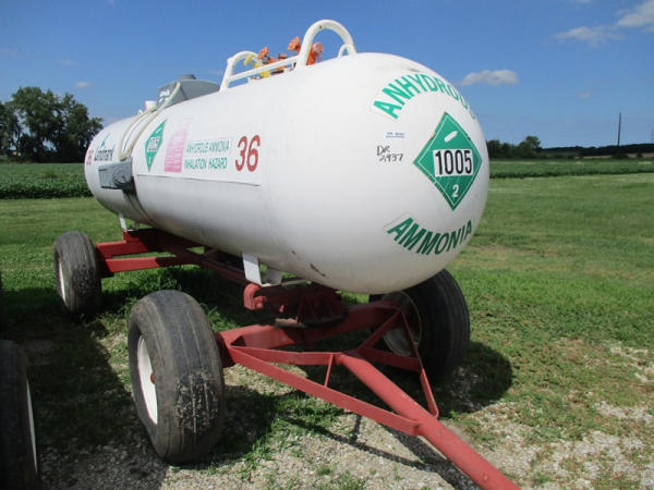 Nh3 Nurse Tank (DR2937 Unit 36) 1000 gallon tank, top front fill, data tag, 5th wheel style running gear, rear hitch, 12.5L-15 tires.