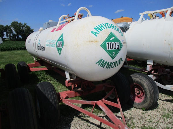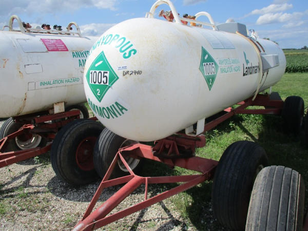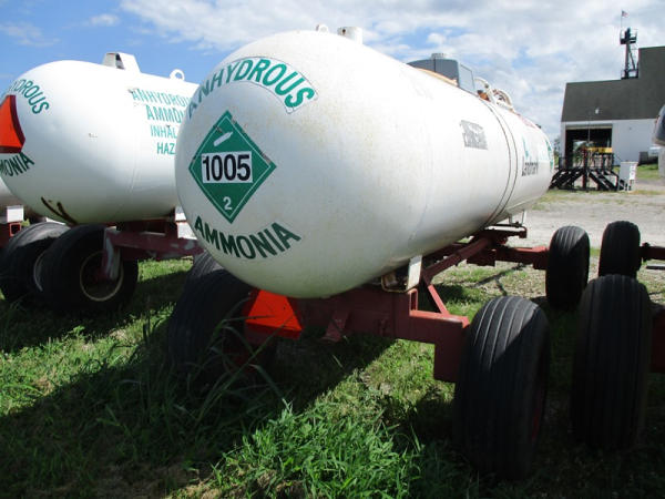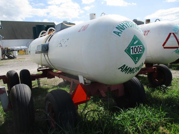 Nh3 Nurse Tank (DR2940 Unit 210) 1000 gallon tank, top front fill, data tag, 5th wheel style running gear, rear hitch, 11L-15 tires.