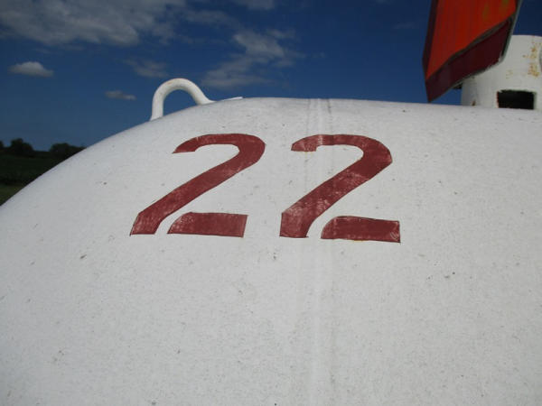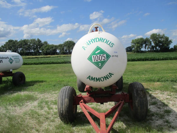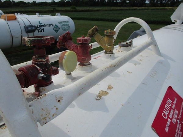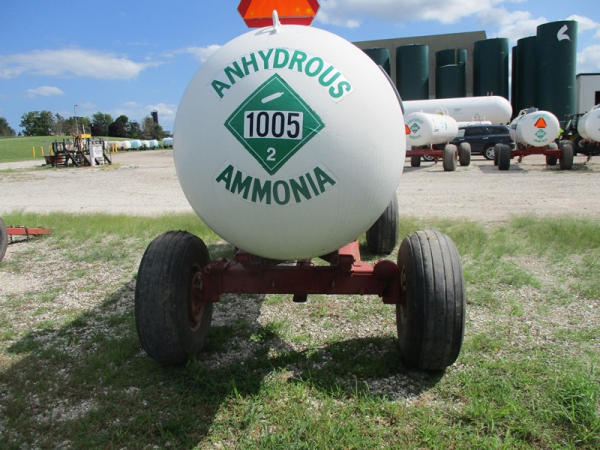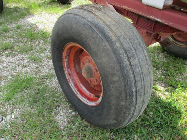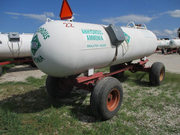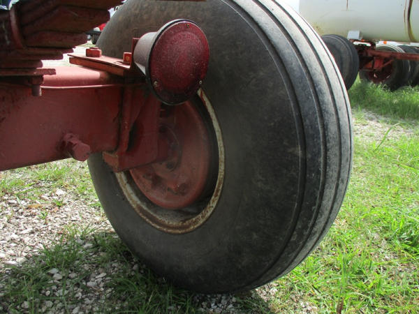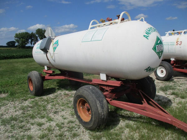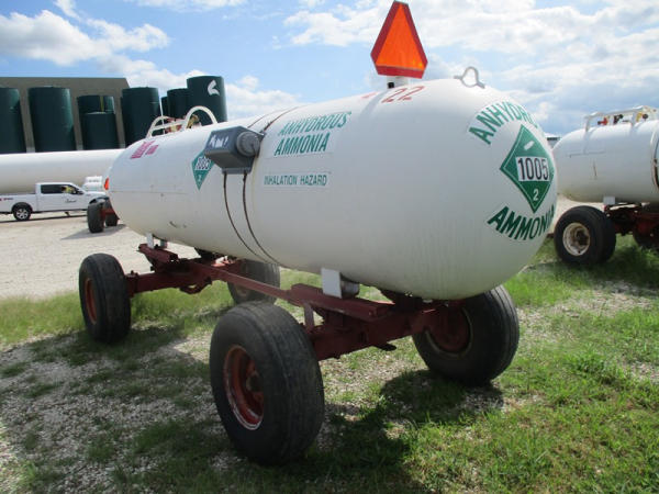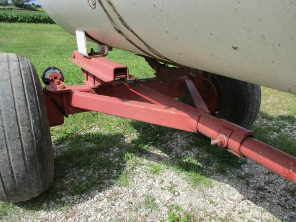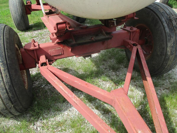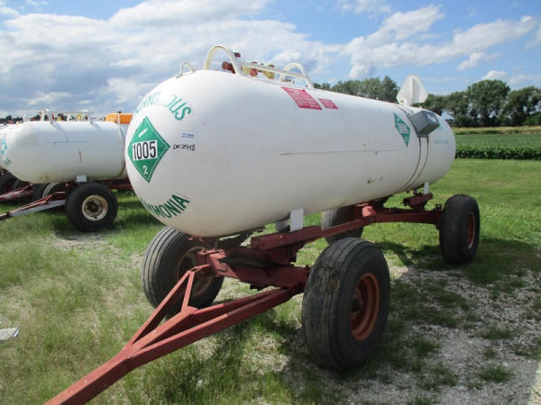 Nh3 Nurse Tank (DR2948 Unit 22), 1000 gallon tank, top front fill, data tag, 5th wheel style running gear, adjustable axles, rear hitch, 12.5L-15 tires.