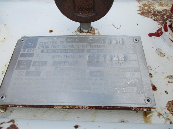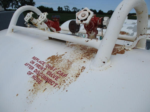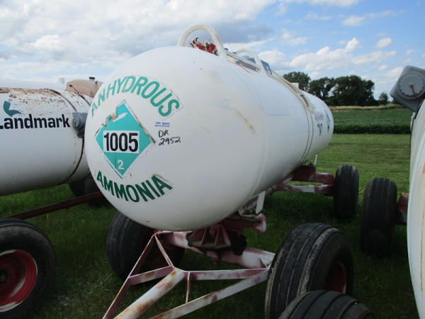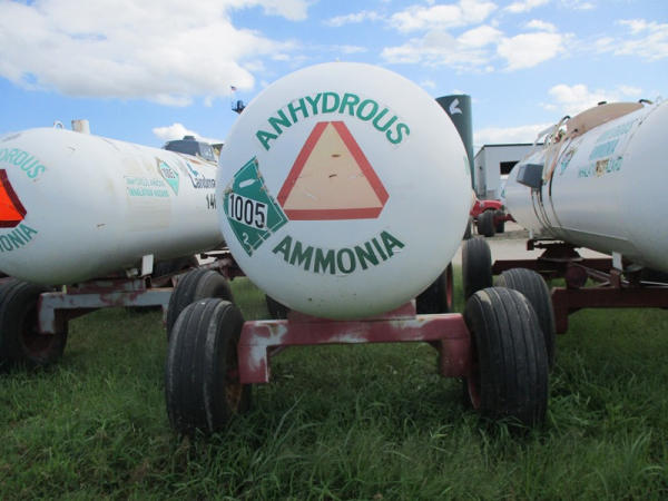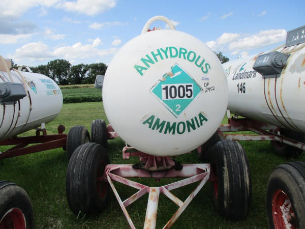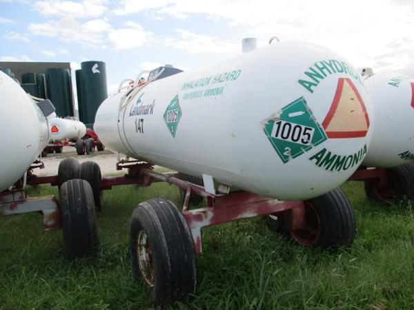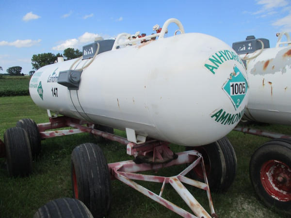 Nh3 Nurse Tank (DR2952 Unit 147), 1000 gallon tank, top front fill, data tag, 5th wheel style running gear, 12.5L-15 tires.
