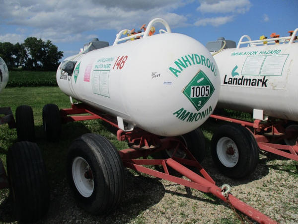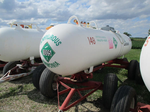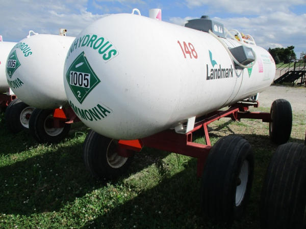 Nh3 Nurse Tank (DR2964 Unit 148), 1000 gallon tank, top front fill, data tag, 5th wheel style running gear, 12.5L-15 tires.