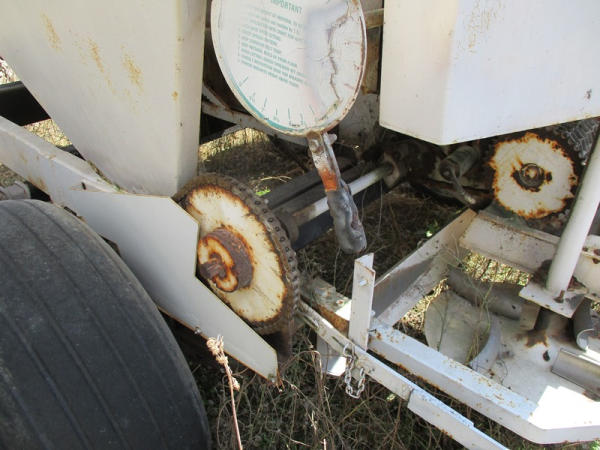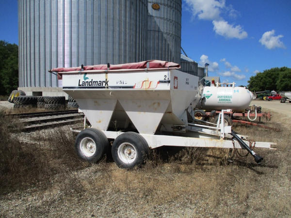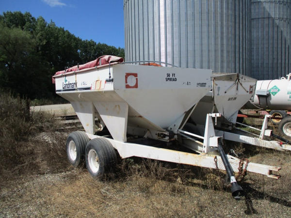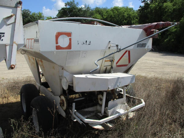 Willmar 500 Dry Spreader (DR2979 Unit 2), 5 ton stainless steel dry spreader buggy, ground drive web chain, dual PTO drive rear spinners, roll over tarp, 12.5L-15 tires.