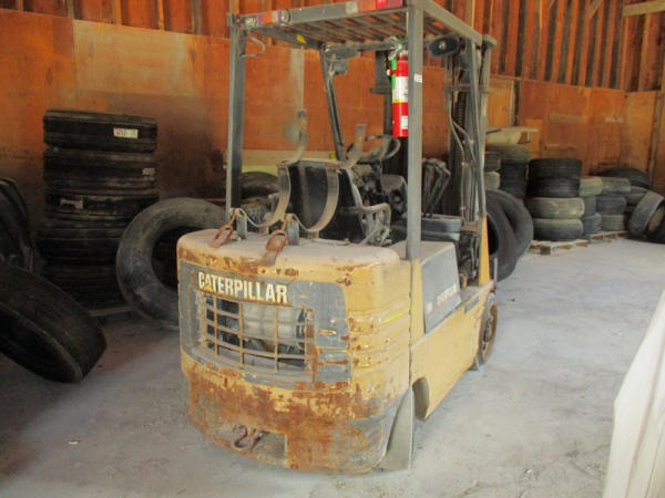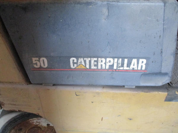 Cat 50 Forklift (DR2977), NON RUNNER, LP gas engine NO Tank, shuttle shift transmission, hard tires, 3 stage mast, hydraulic side shift.