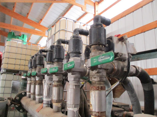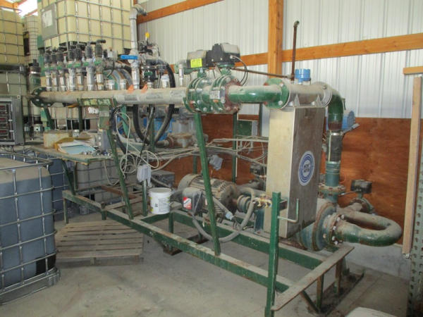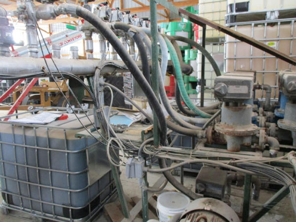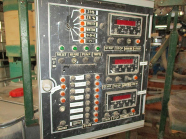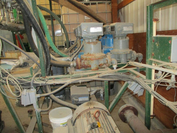 Junge System (DR2901), liquid blending system, (8) metered pumps, 4" liquid pump, 40 hp electric motor, Micor Motion panel, control panel, shutoffs.