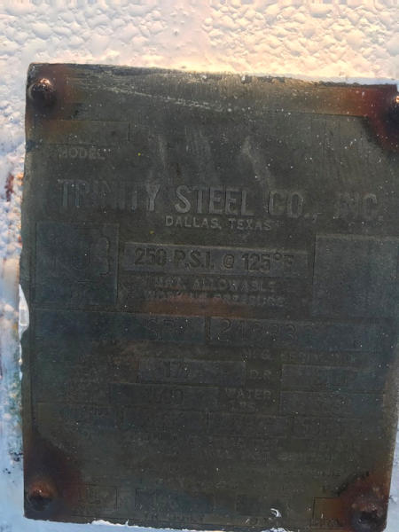 NH3 Nurse Tank (NP8807), 1966 Trinity Steel Co. Inc. 1,000 gallon capacity, top front fill, flotation tires, auto steer gear, fresh paint, data plate.