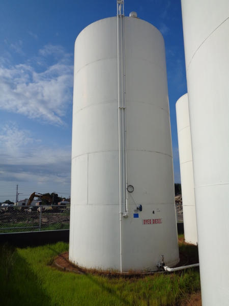 Fuel Storage Tank (PZ2730, Tank #4), approx. 17,000 gallon capacity, approx. 23' 9" tank height, 59 gallons per inch, steel tank, manway access, used to store DYED DIESEL.