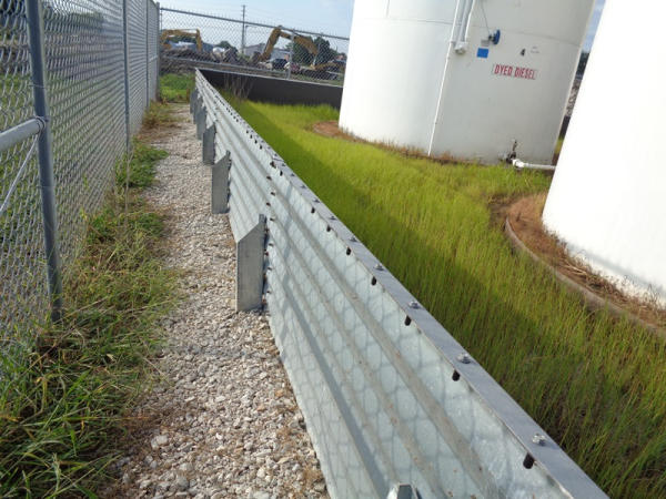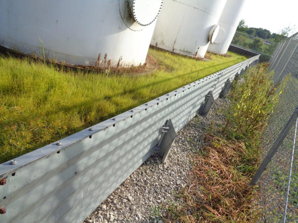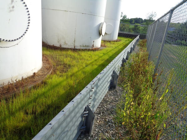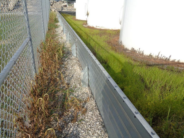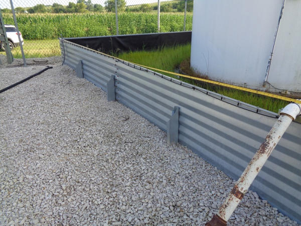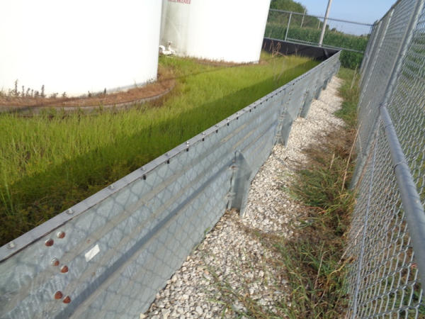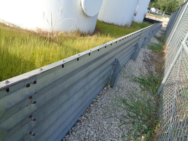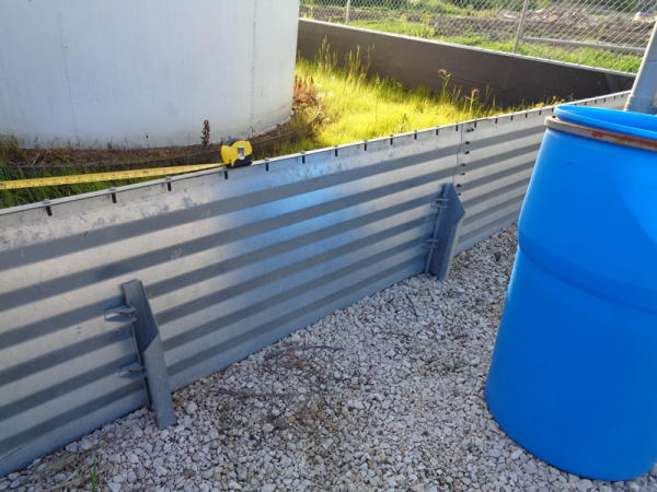 Galvanized Containment Dike (PZ2733), galvanized steel containment dike, approx. 40' x 60', vynl lined, support braces.