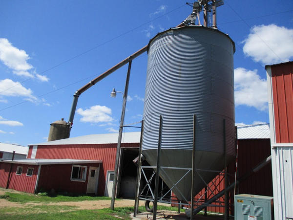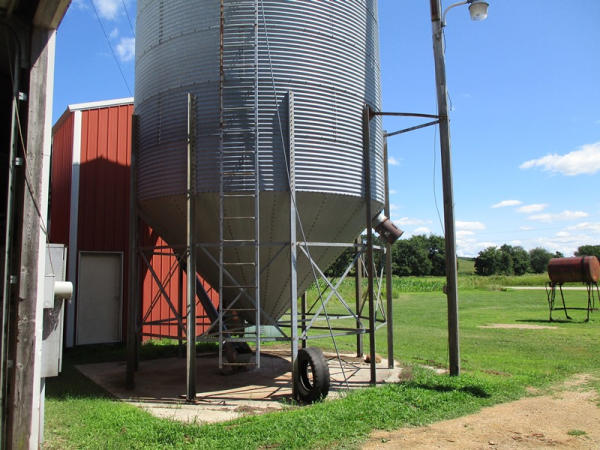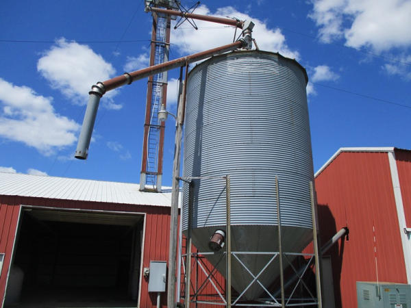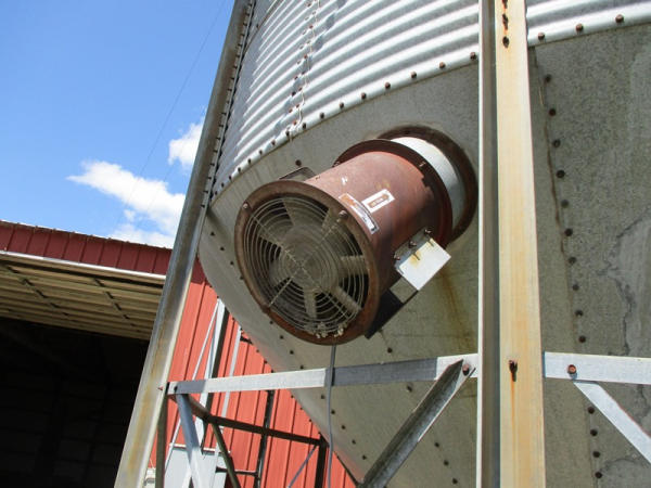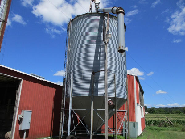 Hopper Bin (DR2982), 7 ring 15' diameter hopper bin, approximately 18' tall plus 9.5' cone bottom, Caldwell aeration fan.