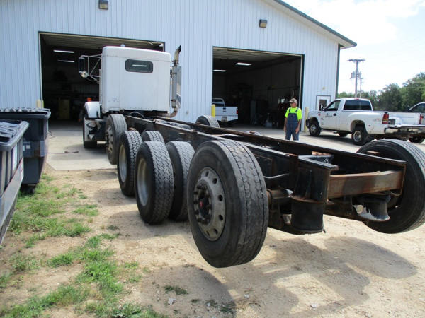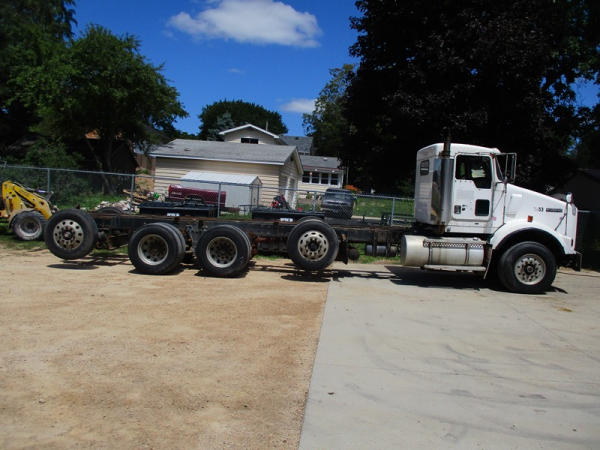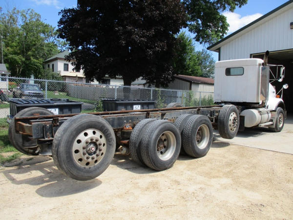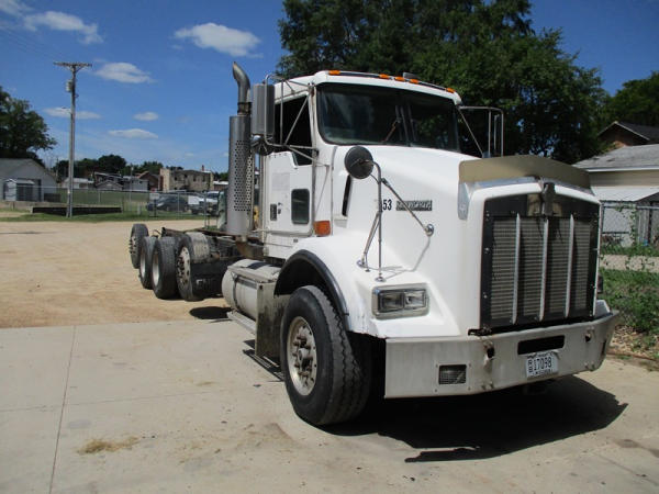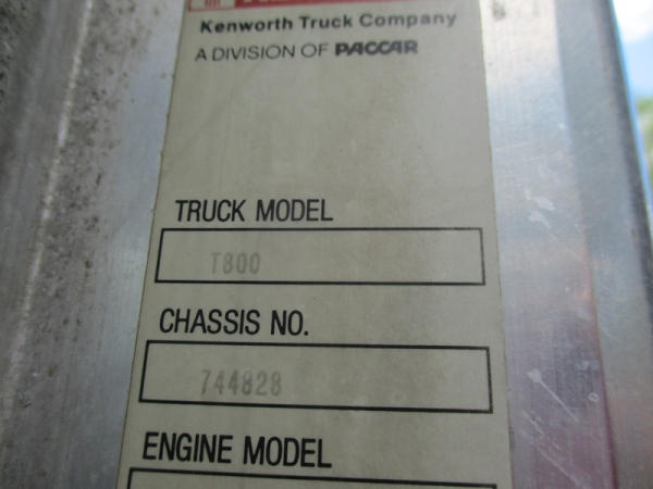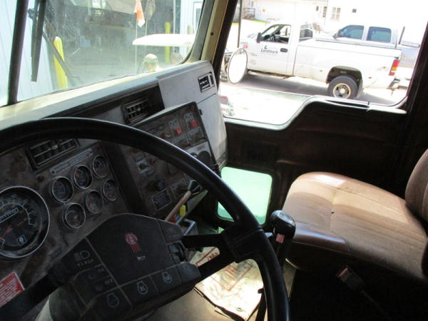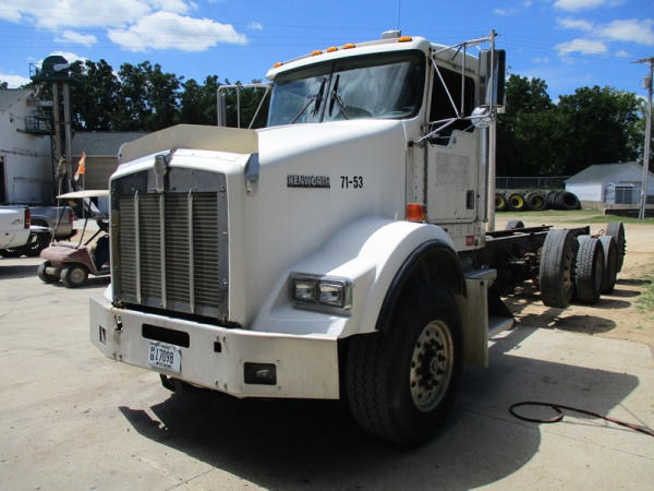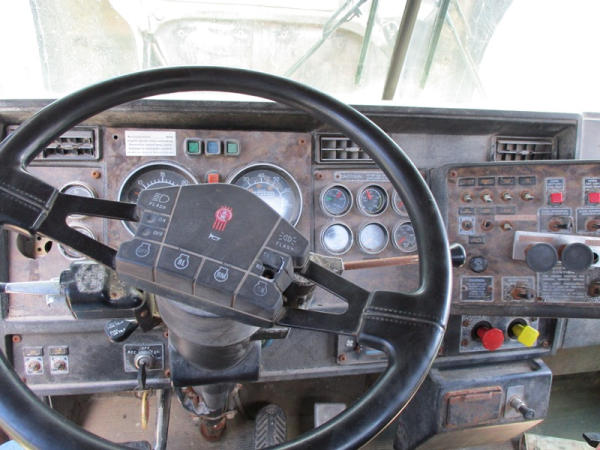 1997 Kenworth T800 Cab/Chassis (DR2989 Unit 71-53), Cummins diesel engine, 13 speed transmission, day cab, tandem axle full screw, air ride suspension, air lift tag & pusher axle, air dump valve, cruise control, 22.5 tires, all aluminum wheels, shows 11,298 miles.