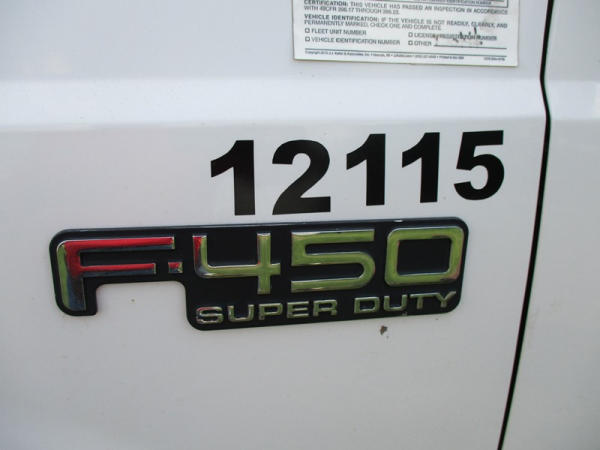1999 Ford F450 (DR2314 Unit 12115), cab/chassis, diesel engine, automatic transmission, 4X4, AM/FM radio, heat/air conditioning, shows 217,084 miles.