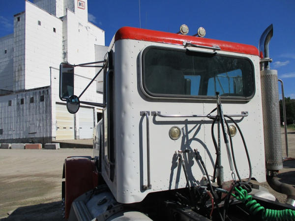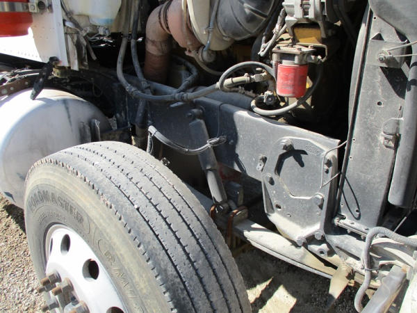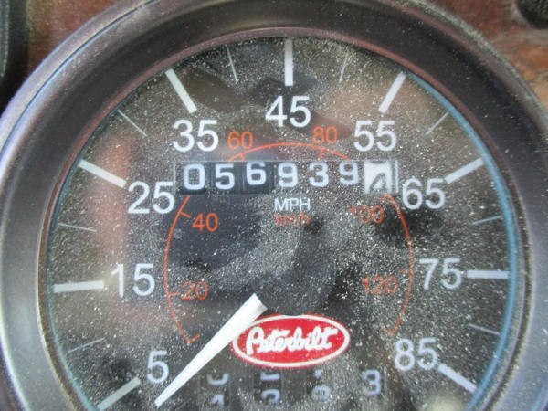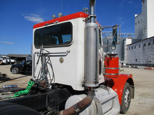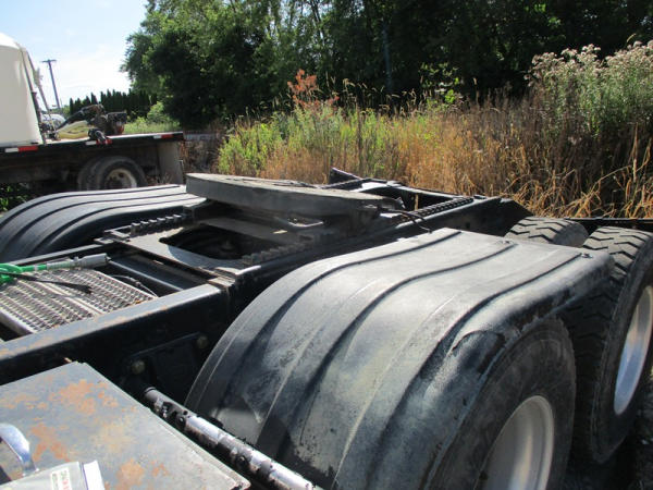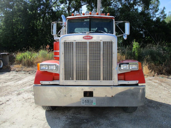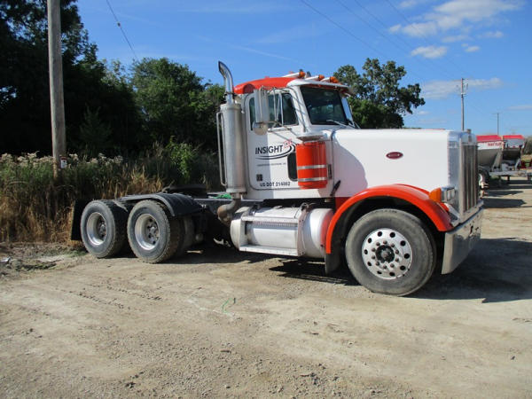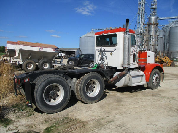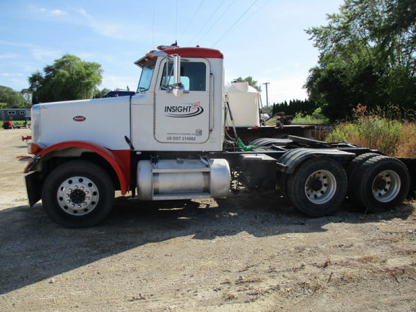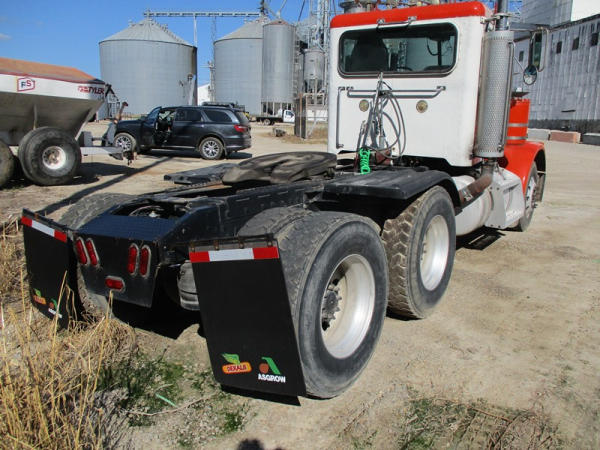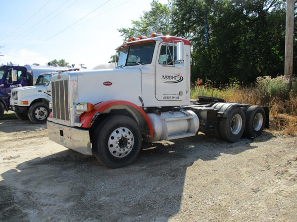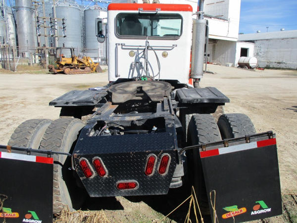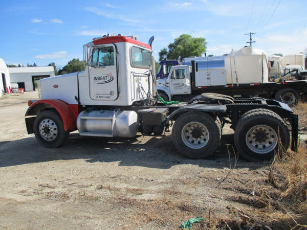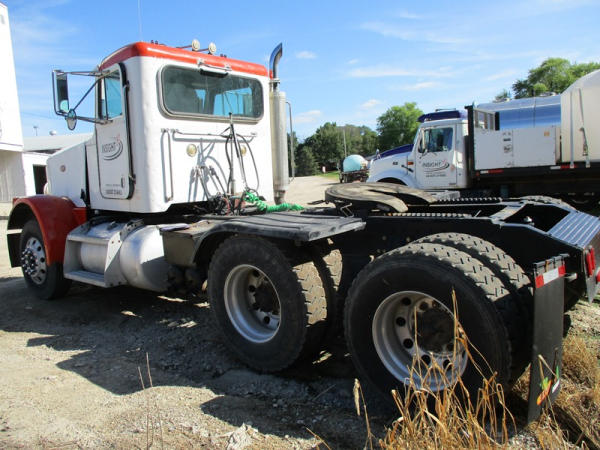 2000 Peterbilt 378 Day Cab Truck (DR2799), Cat 3406 diesel engine, 10 speed transmission, day cab, tandem axle full screw, Pete Air Leaf suspension, air dump valve, factory day cab, dual aluminum fuel tanks, air slide 5th wheel plate, cruise control, cab heat/air conditioning, Minimizer 1/2 fenders, 22.5 tires, outside aluminum wheels, shows 56,939 miles.