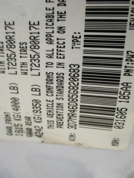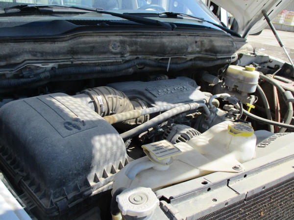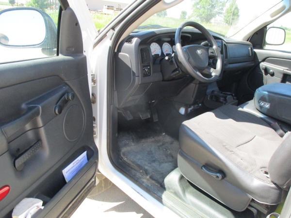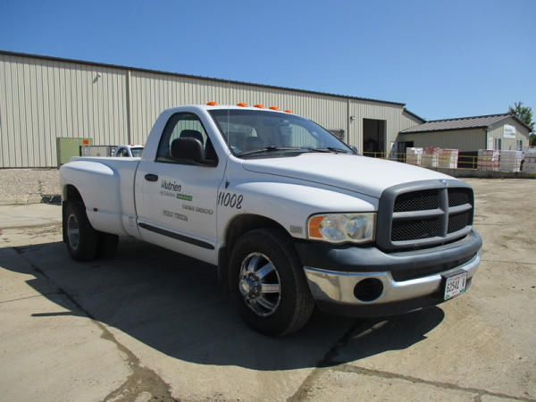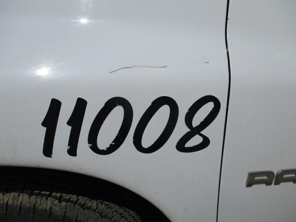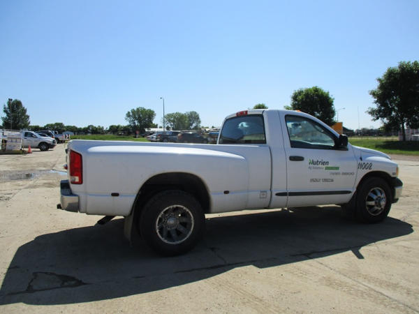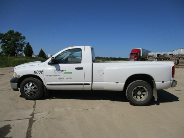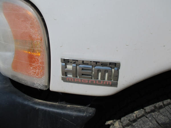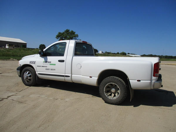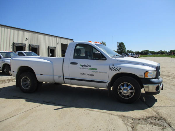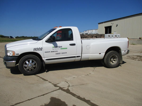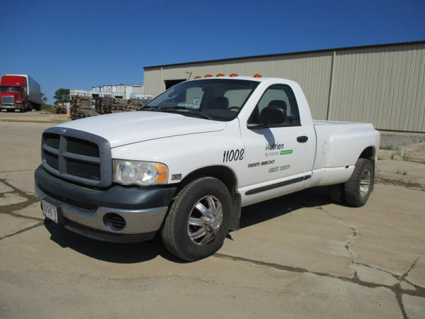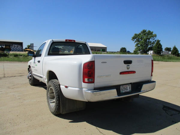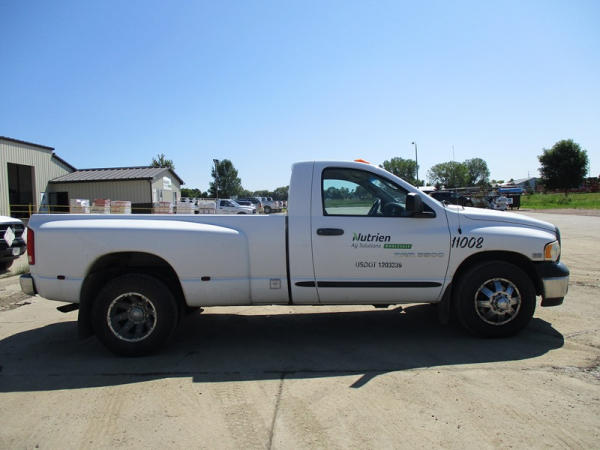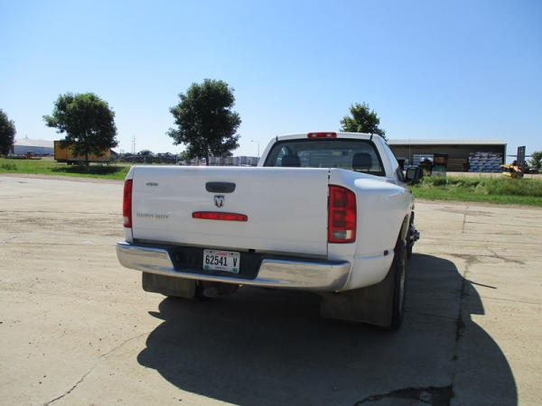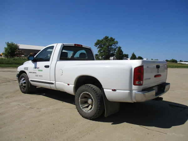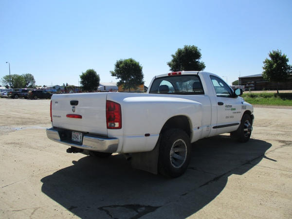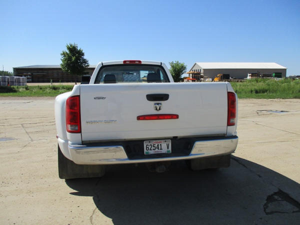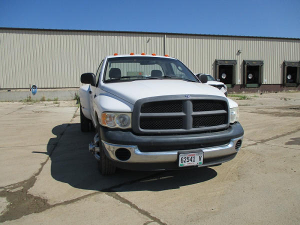 2005 Dodge Ram 3500 (DR3007, Unit 11008), 2WD, Hemi gas engine, automatic transmission, regular cab, rear receiver hitch, AM/FM cassette radio, cab heat/air conditioning, cruise control, 235/80R17 tires, cast aluminum wheels, shows 331,048 miles.