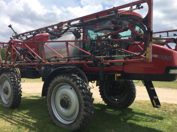 2012 CaseIH 4430 Sprayer (PZ2670), diesel engine, hydrostatic transmission, air conditioning, heat, Am/Fm CD stereo, 1200 gallon stainless steel liquid system, 100' boom, 5 way nozzles, boom strainer, 110 gallon top poly rinse tank, stainless steel chemical inductor, 3" to 2" reload, side tool box, 380/90R46 tires @ 60%, RGL600 Raven Viper Pro, Phoenix 200, Accuboom, shows 3656 hours.