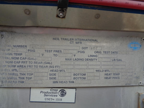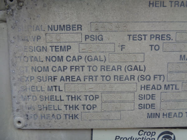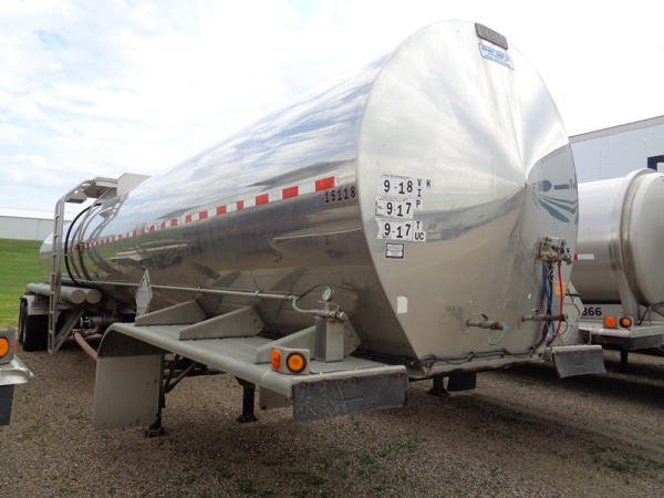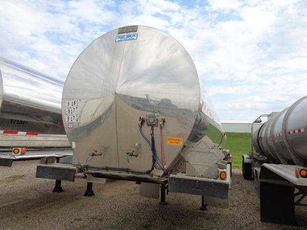 2001 Heil Liquid Trailer (PZ2725, Unit 15118), 2001 Heil 6500 gallon stainless steel liquid transport trailer, Blackmer PTO pump, tandem axle, air ride suspension, 295/75R22.5 tires, aluminum rims.