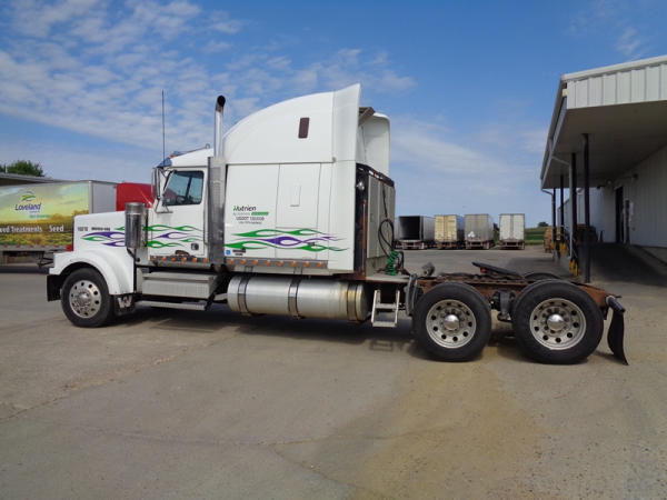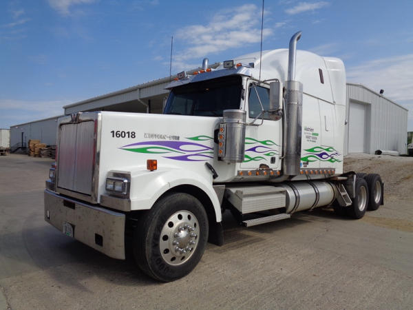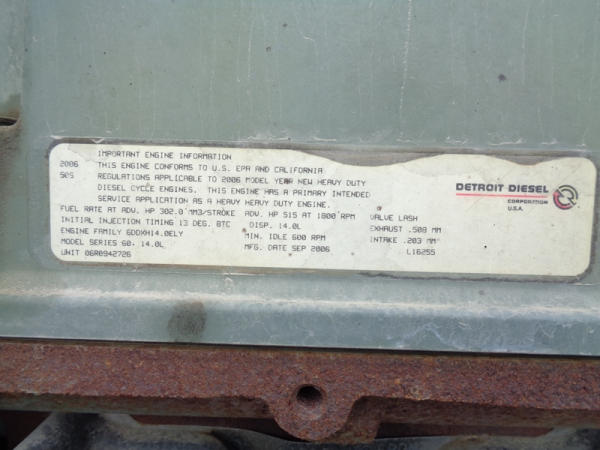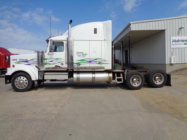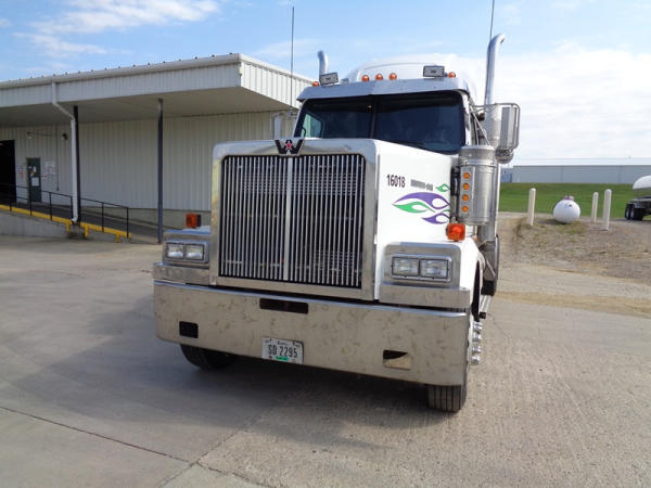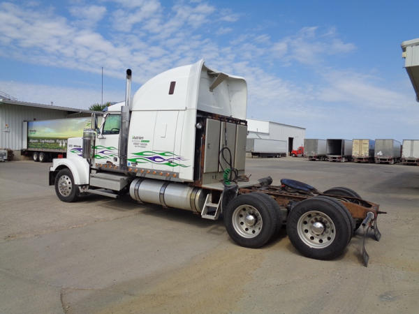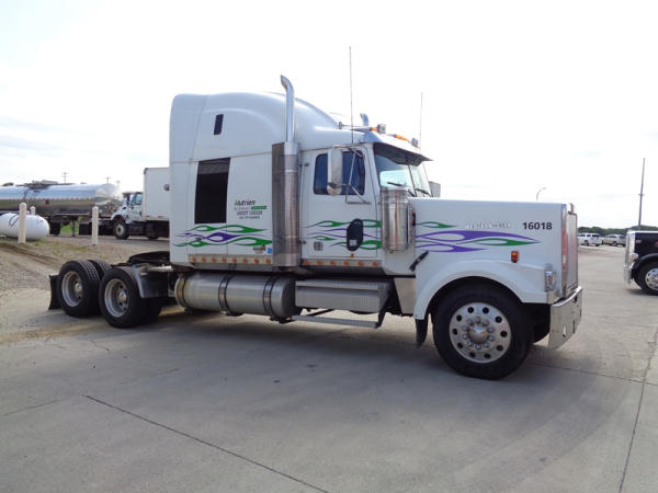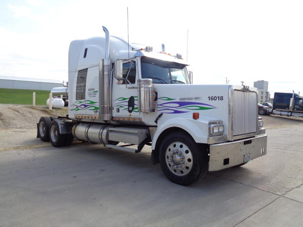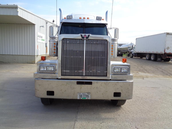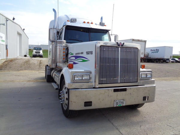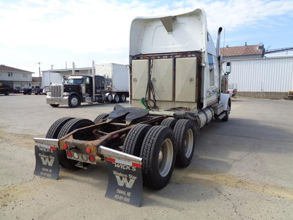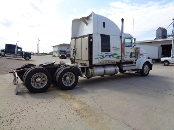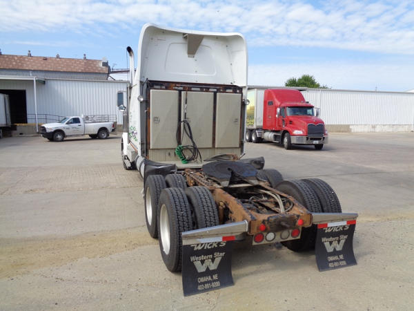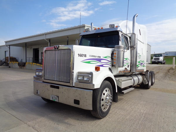 2007 Western Star Truck (PZ2718, Unit 16018), Detroit Series 60 diesel engine, 13 speed transmission, air conditioning, heat, Am/Fm CD stereo, cruise control, engine brake, power windows, Stratosphere sleeper, tandem axle, full screw, air ride suspension, 5th wheel, PTO, 285/75R24.5 tires, aluminum rims, shows 747,876 miles.