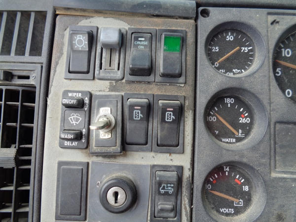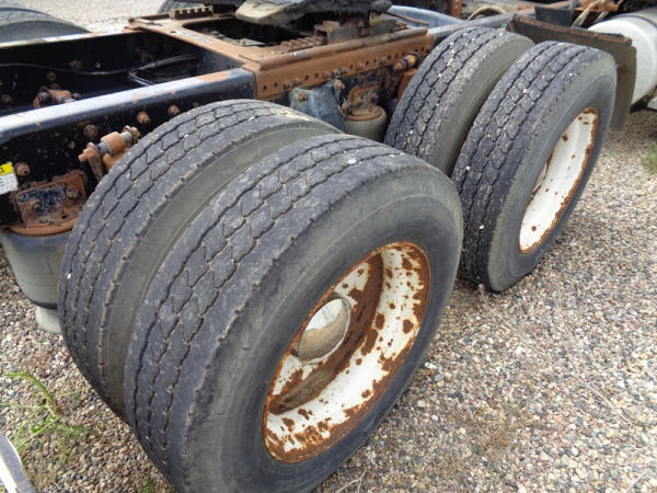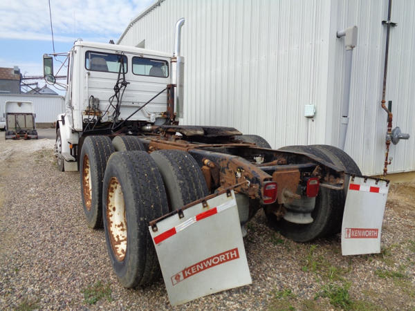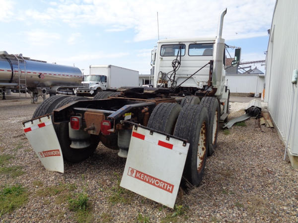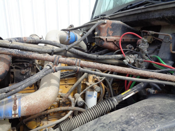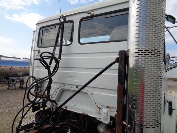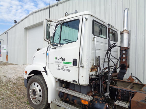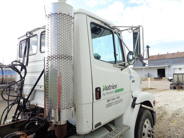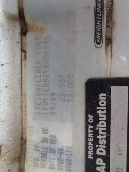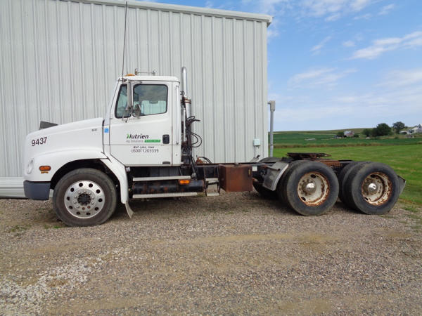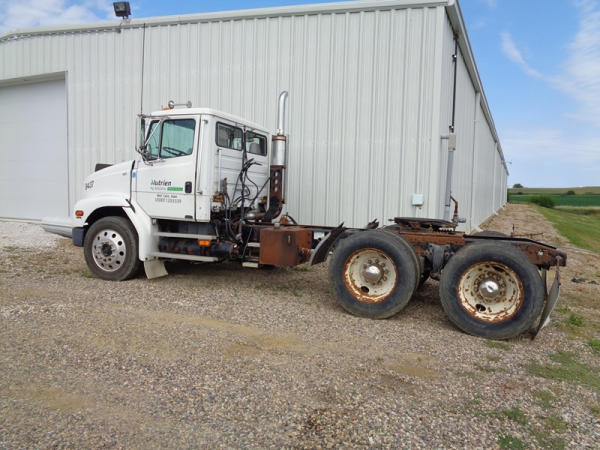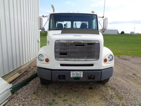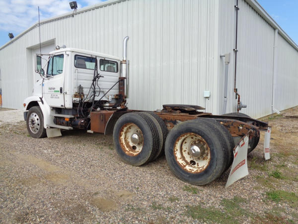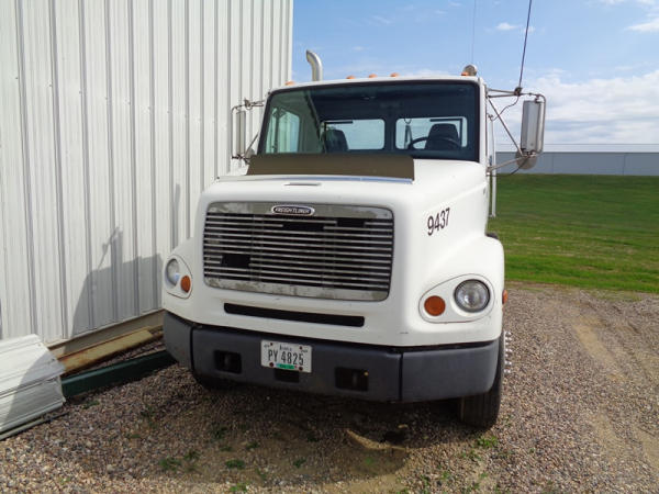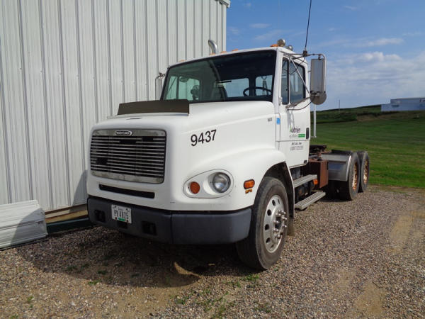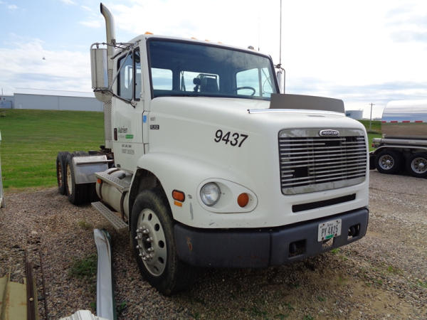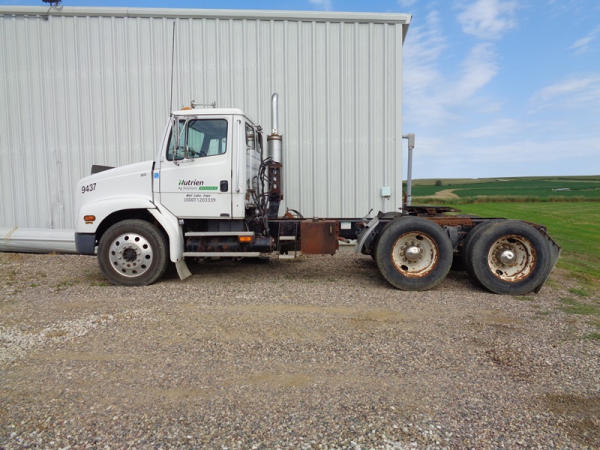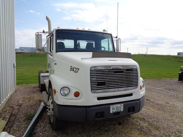 2000 Freightliner FL112 Truck (PZ2719, Unit 09437), Cat C-12 diesel engine, 10 speed transmission, air conditioning, heat, Am/Fm cassette radio, cruise control, tandem axle, full screw, air ride suspension, 5th wheel, PTO, 275/80R24.5 tires, shows 196,263 miles.