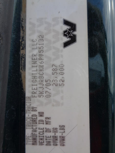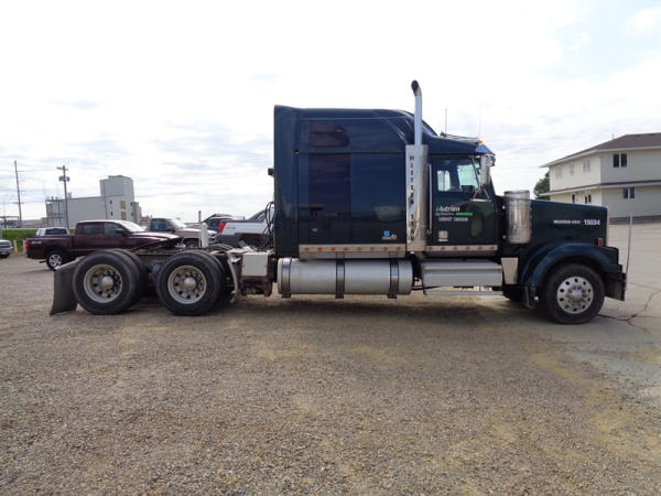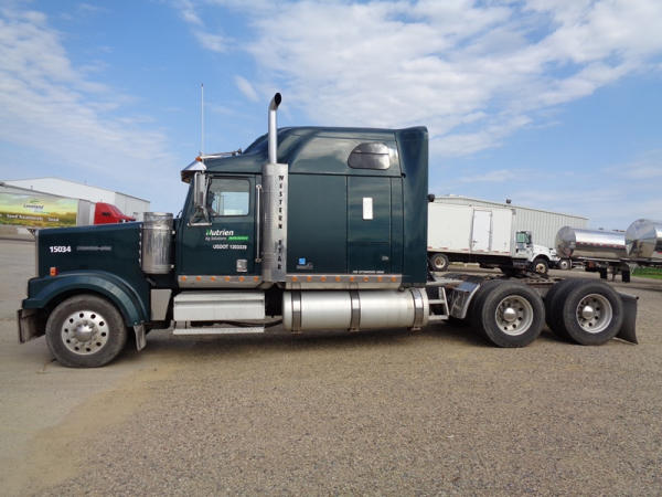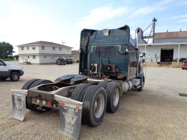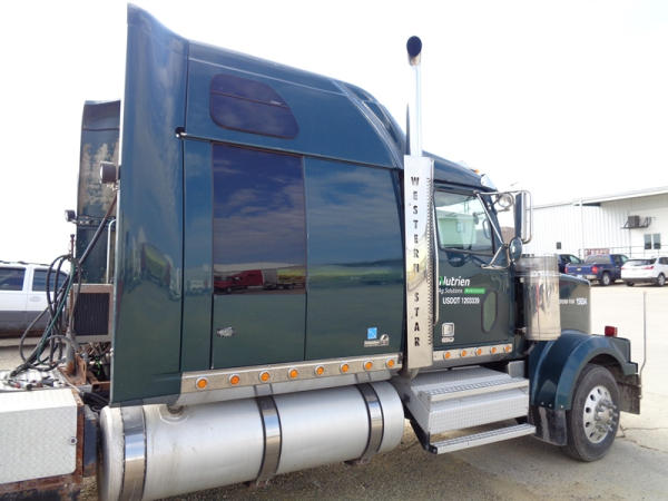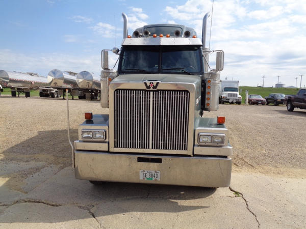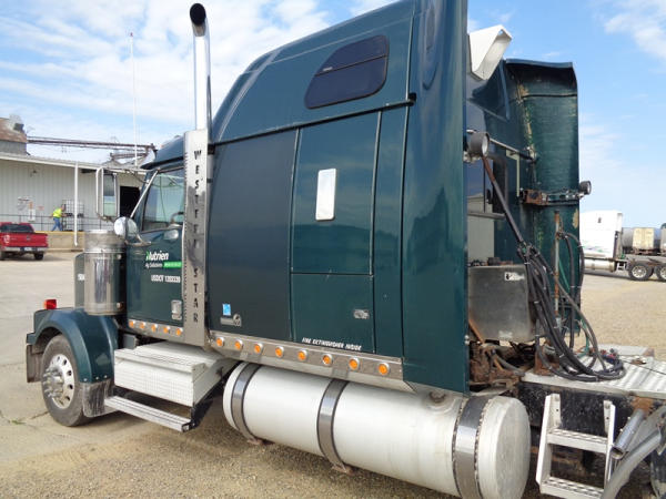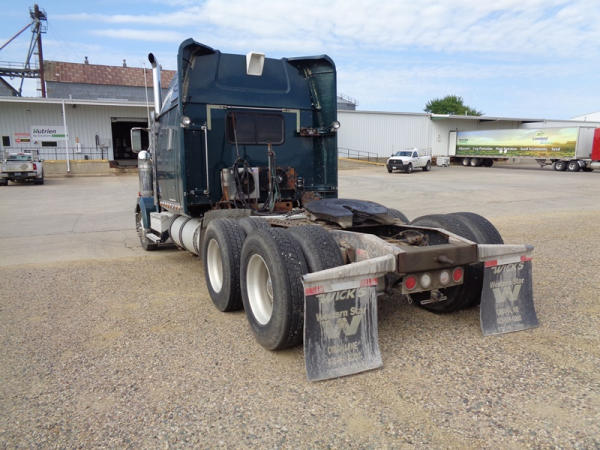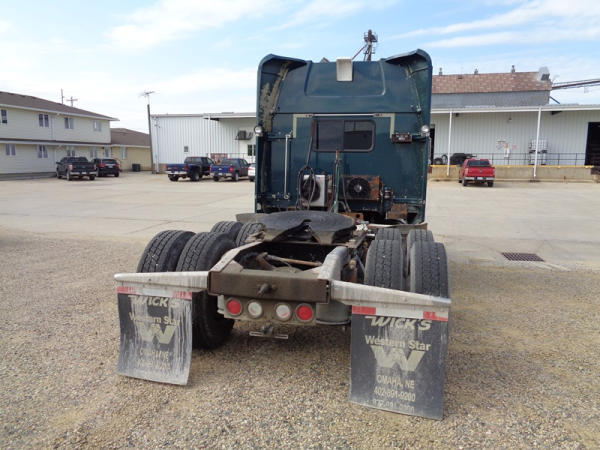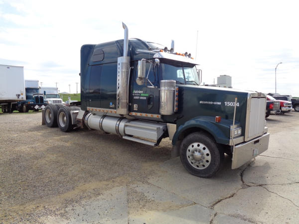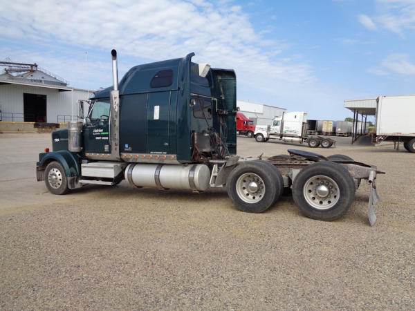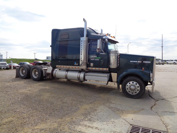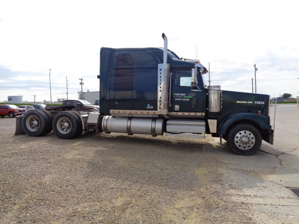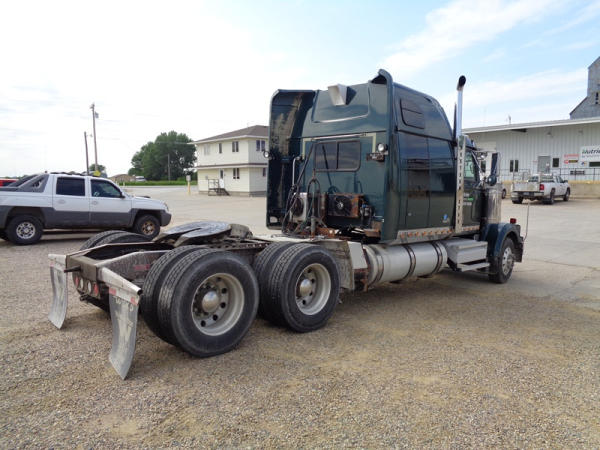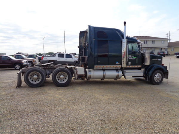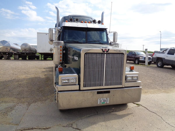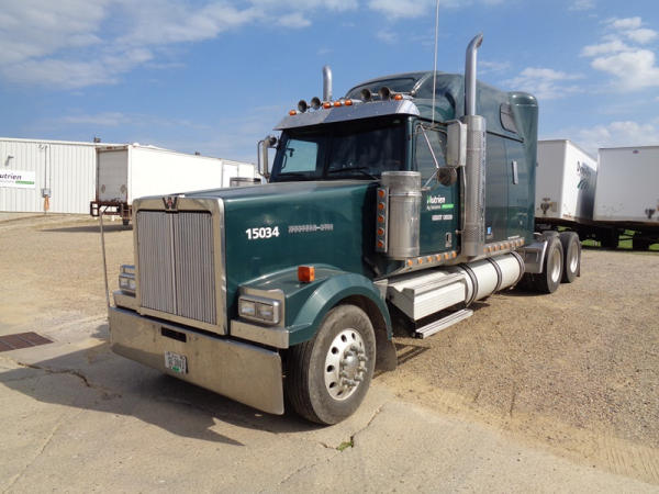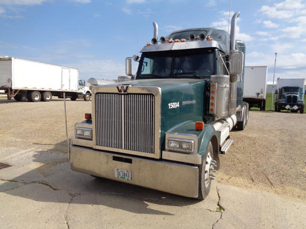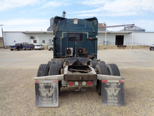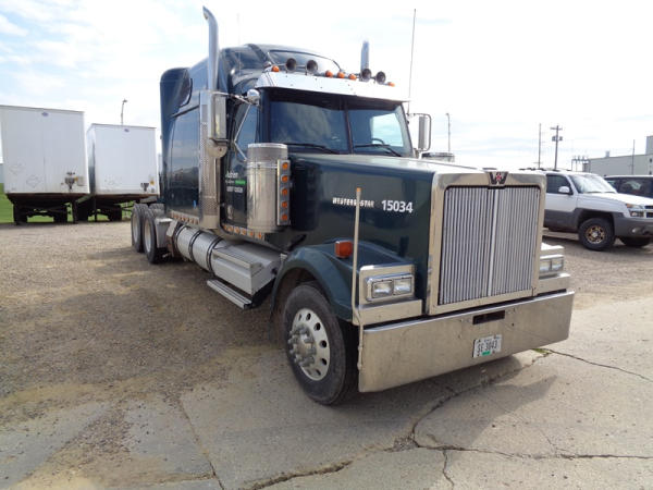 2006 Western Star Truck (PZ2720, Unit 15034), Detroit Series 60 diesel engine, 18 speed transmission, air conditioning, heat, Am/Fm CD stereo, cruise control, engine brake, power windows, Stratosphere sleeper, tandem axle, full screw, air ride suspension, 5th wheel, PTO, 295/75R22.5 tires, aluminum rims, shows 376,776 miles.