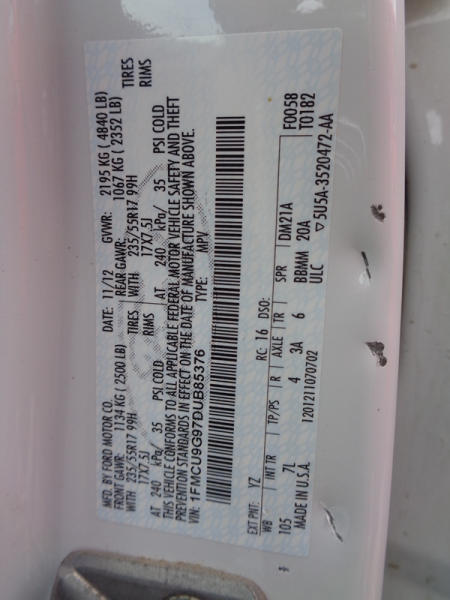 2013 Ford Escape SE (PZ2723, Unit 76176), EcoBoost gas engine, automatic transmission, air conditioning, heat, Am/Fm CD stereo, cruise control, power windows & locks, 235/55R17 tires, shows 144,092 miles.