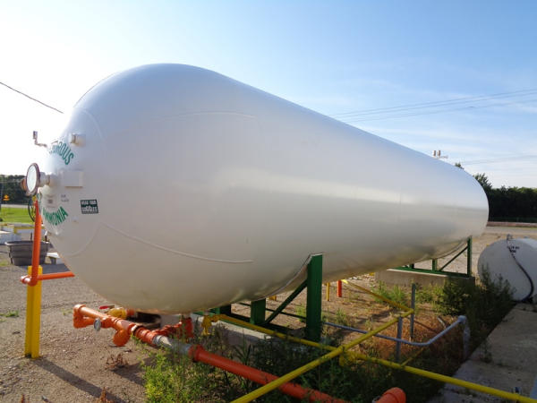 NH3 Storage Tank (PZ2687), 12,000 gallon NH3 storage tank, Magnetel tank volume gauge, tank and valve only, steel saddles, NO data plate.