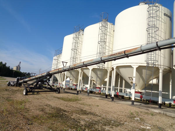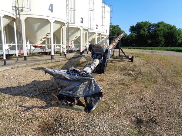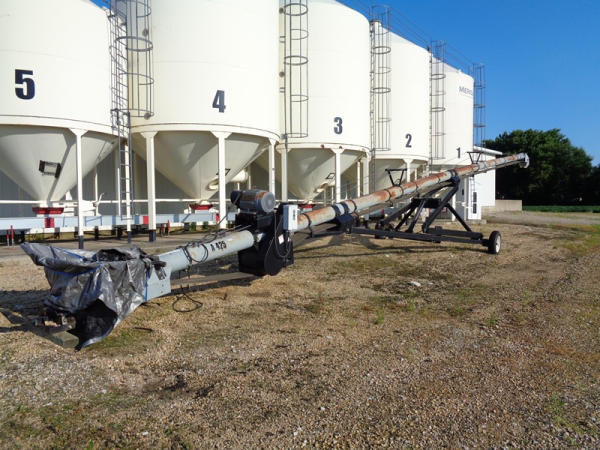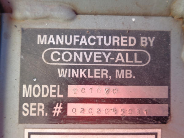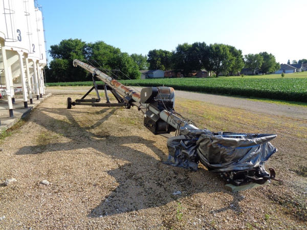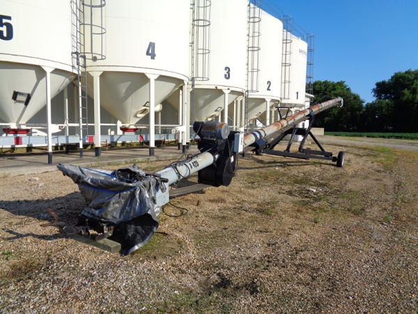 Convey All Seed Conveyor (PZ2691, Unit A425), Convey All model TC1070 seed conveyor, Teco 15 hp electric motor, portable, ST205/75D15 tires.