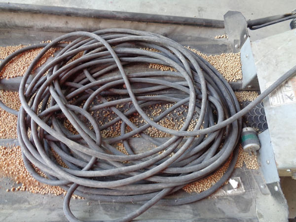 Convey All Seed Conveyor (PZ2692, Unit A422), Convey All model UBGN-1014 undercar seed conveyor, Teco 5 hp electric motor, cord, portable.