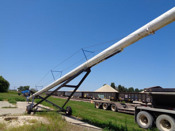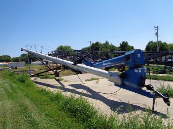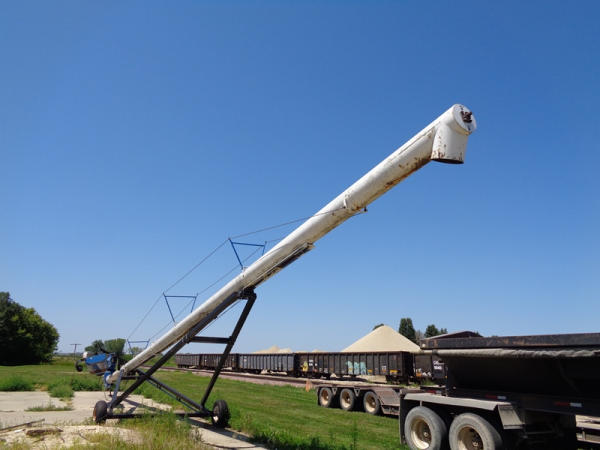 Brandt Grain Auger (PZ2707, Unit 3108), Brandt 13 x 80 grain auger, swing hopper, portable, PTO, 9.5L-15 flotation tires.