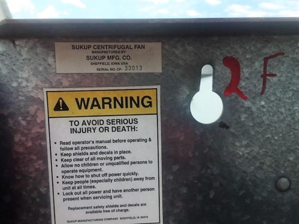 Sukup Dryer Fan (DL579), Sukup centrifugal 30 inch dual inlet bin fan, 40hp, downstream burner unit, sold as a unit.