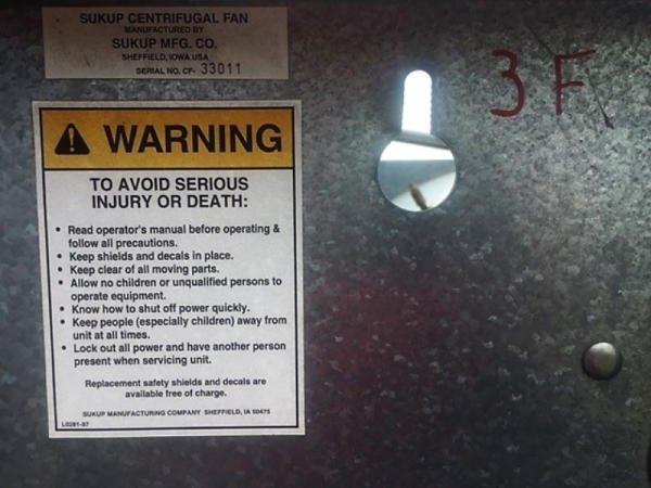 Sukup Dryer Fan (DL580), Sukup centrifugal 30 inch dual inlet bin fan, 40hp, downstream burner unit, sold as a unit.