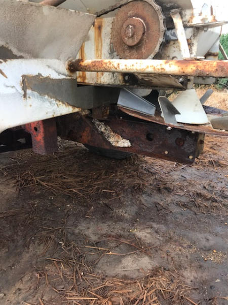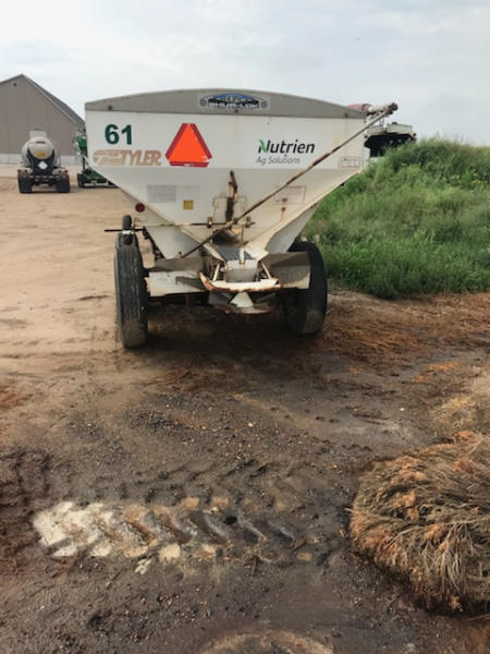 Tyler Spreader Unit (PD1735, unit 83965), rusted unit, the rear fam assembly is cracked and rusted/falling off, drive train is in useable condition, all bearings/pins/zerks have been replaced in 12/18, tires are useable, unit is repairable with parts direct from manufacturer.