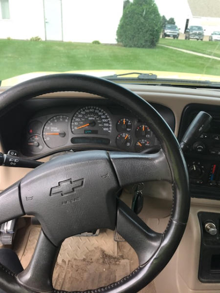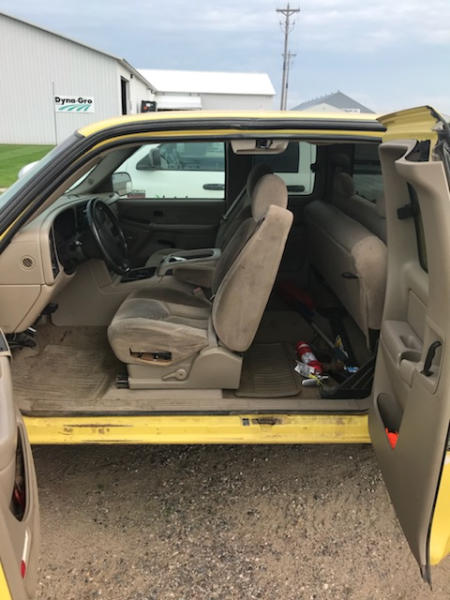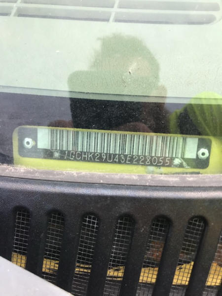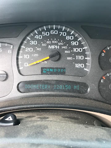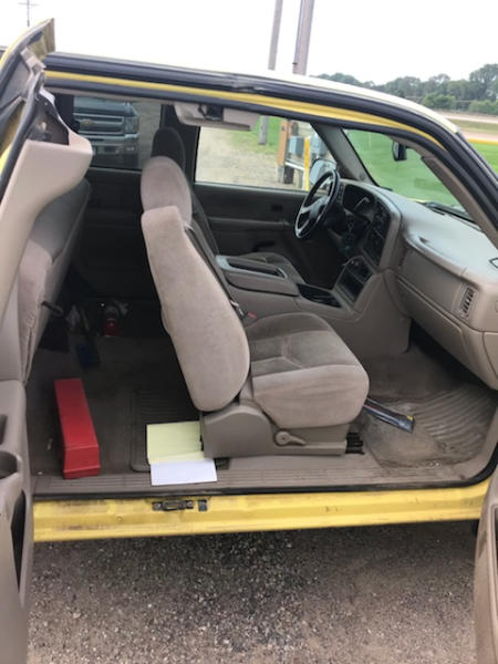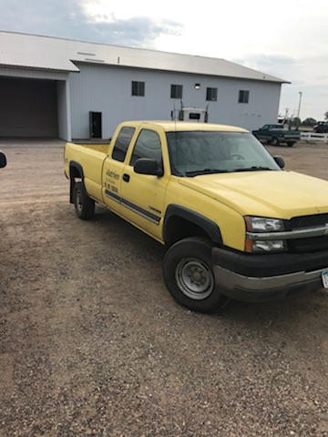 2003 Chevrolet 2500HD Ext. Cab Truck (PD1732, unit 12210), plant use vehicle, interior is in fair condition with some rips in seats, some dents in the body, tires at 50%, still in use, shows 220,150 miles.