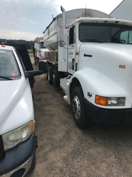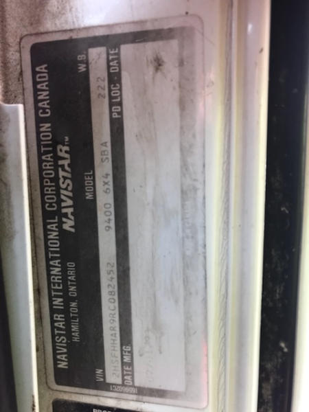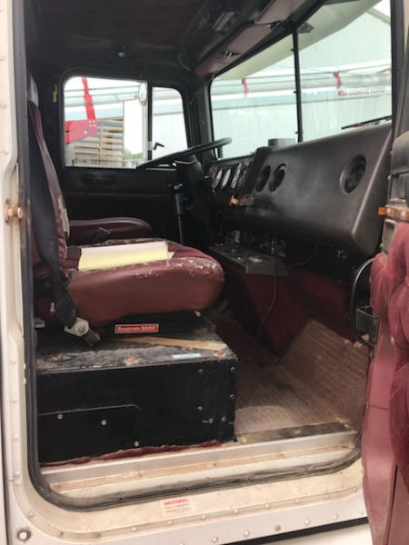 1994 International TM90S Tender Deliver Truck (PD1734, unit 12522), 16 ton tender box, rust and cracks in paint on box, frame front steers 90%, tag and rears 30%, unit works, shows 142,643 miles but odometer has been changed so real mileage unknown.