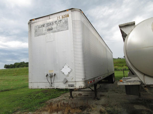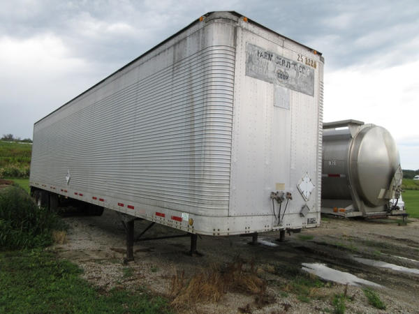 1979 Lufkin Dry Van Trailer (CP1236), 40' length, 11R24.5 tires, tandem axle, rear roll up door, shuttle tanks come with trailer.