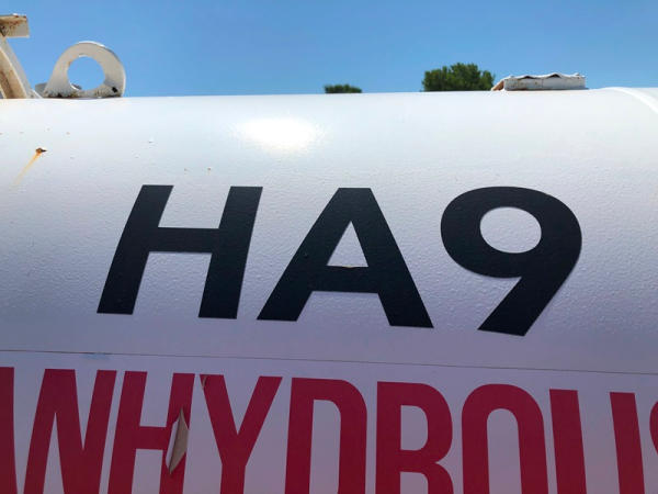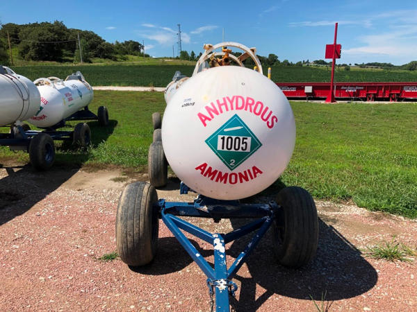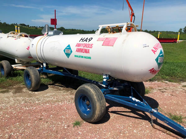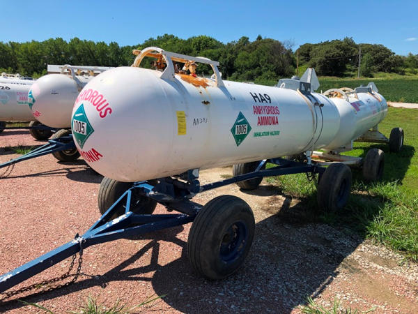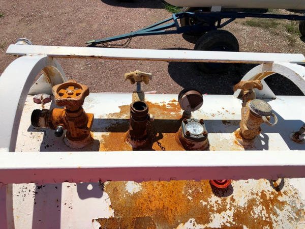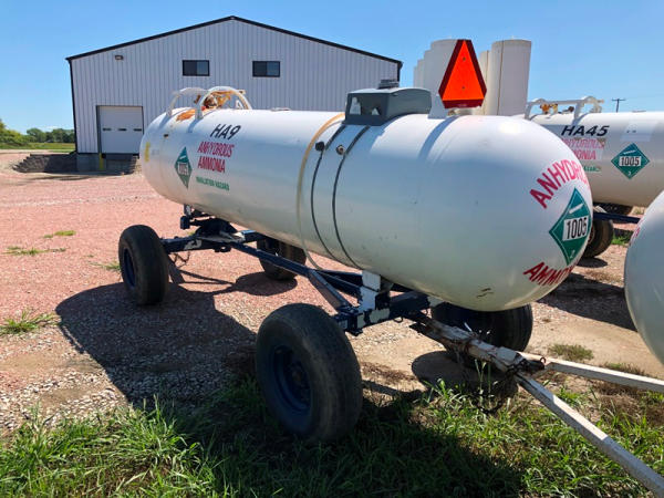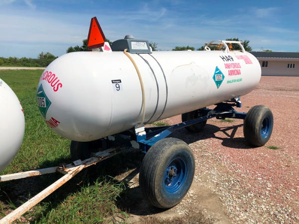 NH3 Tank (NP8808, Tank HA9), 1,000 gallon capacity, top front fill, 5th wheel gear, water tank, 11L-15 flotation tires, data plate.