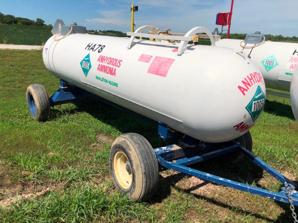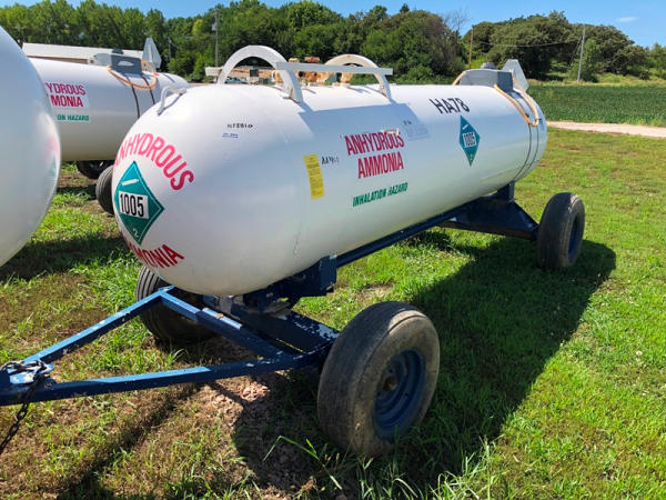 NH3 Tank (NP8810, Tank HA78), 1,000 gallon capacity, top front fill, 5th wheel gear, water tank, 11L-15 flotation tires, data plate.