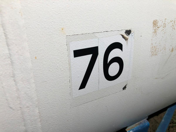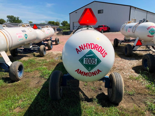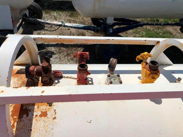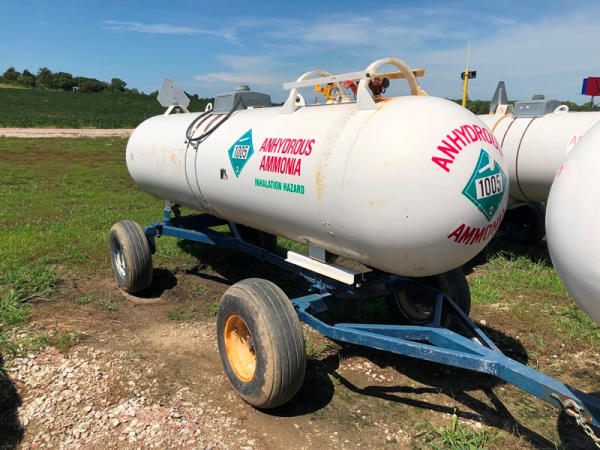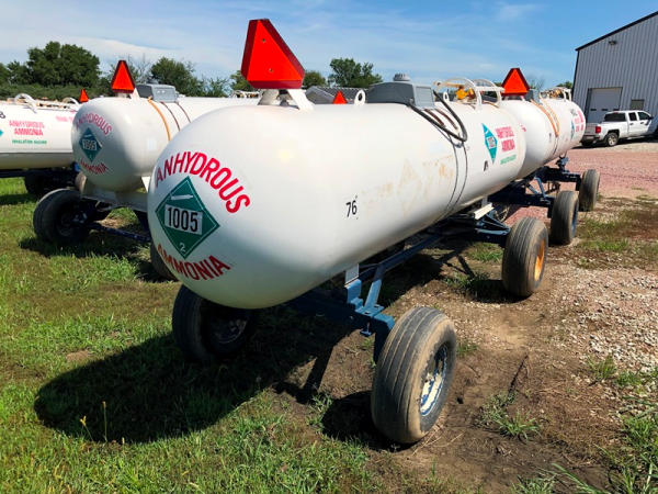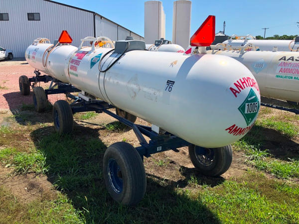 NH3 Tank (NP8814, Tank 76), 1,000 gallon capacity, top front fill, 5th wheel gear, water tank, 11L-15 flotation tires, data plate.