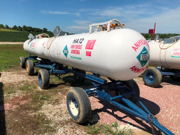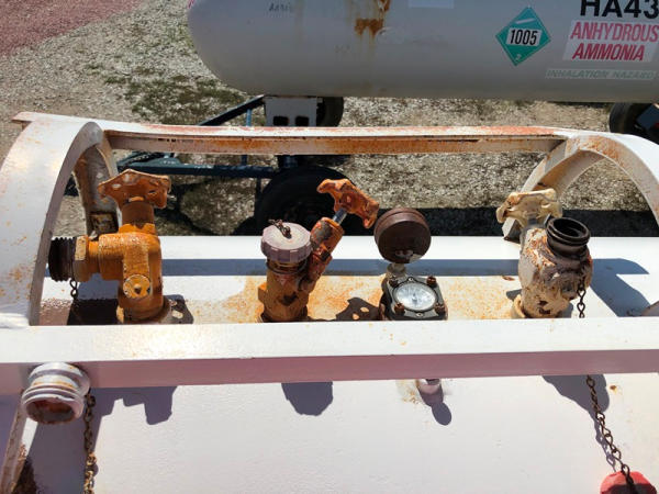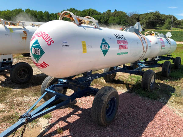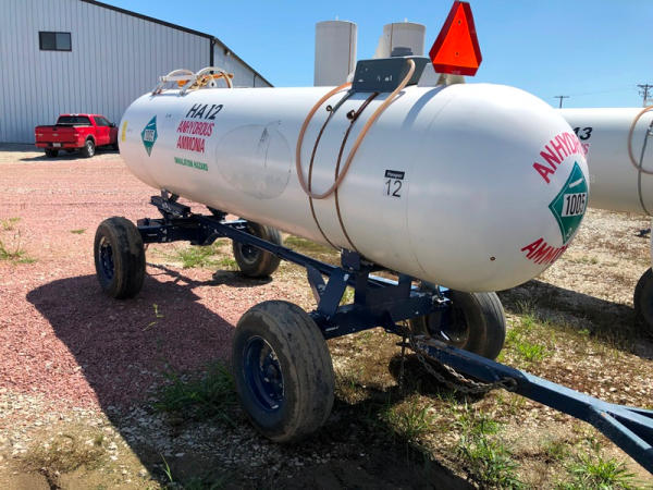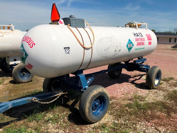 NH3 Tank (NP8815, Tank HA12), 1,000 gallon capacity, top front fill, 5th wheel gear, water tank, 11L-15 flotation tires, data plate.