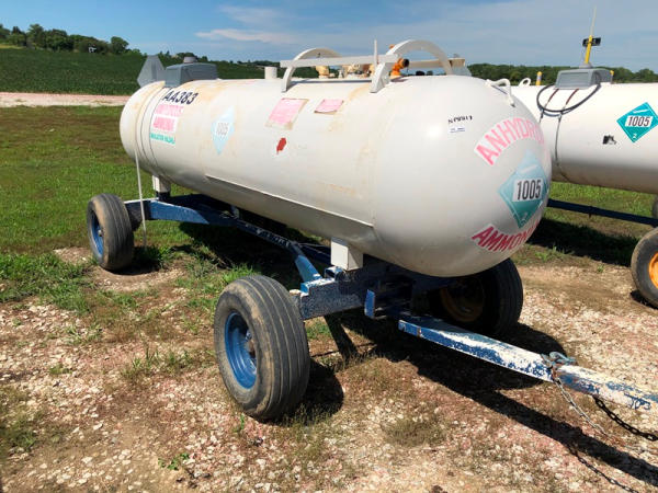 NH3 Tank (NP8817, Tank AA383), 1,000 gallon capacity, top front fill, auto stear gear, water tank, 11L-15 flotation tires, data plate.