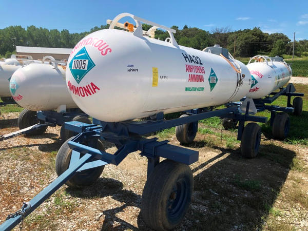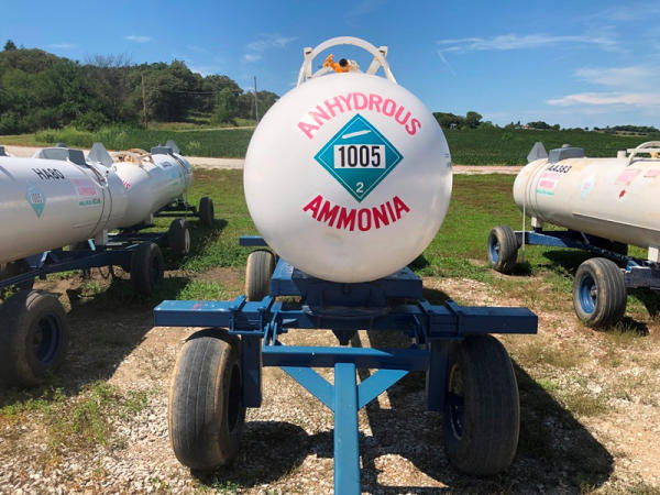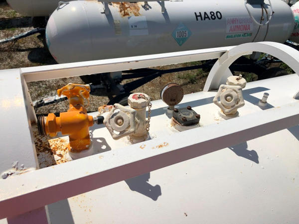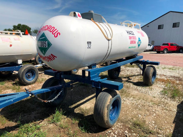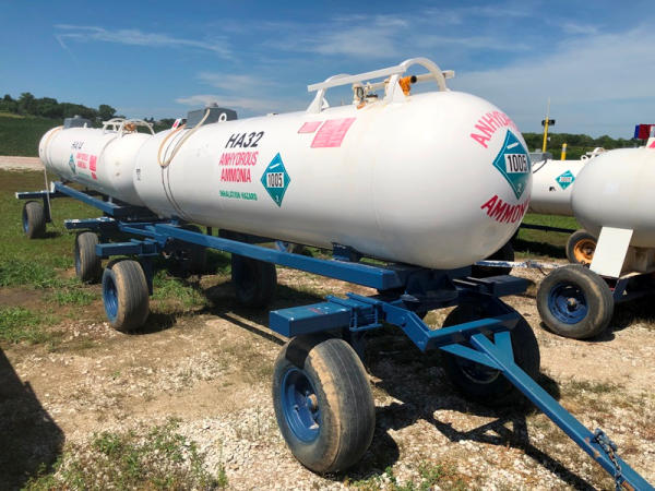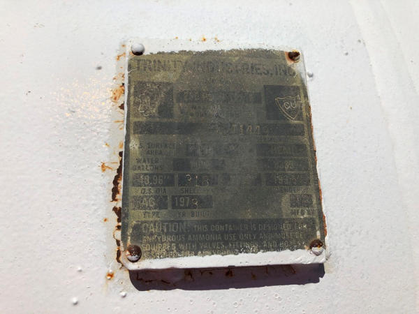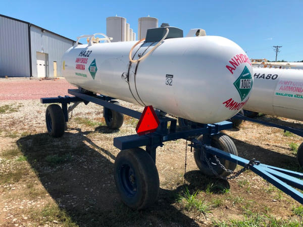 NH3 Tank (NP8819, Tank HA32), 1978 Trinity Industries, Inc. 1,000 gallon capacity, top front fill, 5th wheel gear, water tank, 11L-15 flotation tires, data plate.