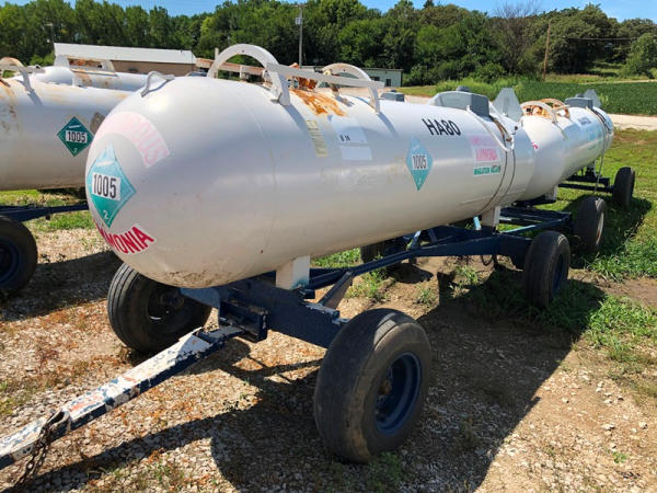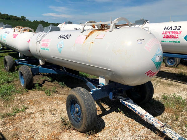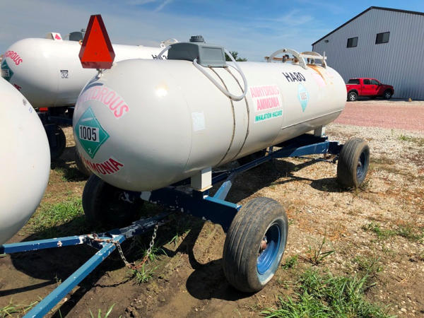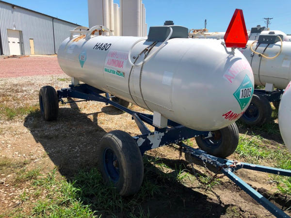 NH3 Tank (NP8820, Tank HA80), 1,000 gallon capacity, top front fill, auto stear gear, water tank, 11L-15 flotation tires, data plate.