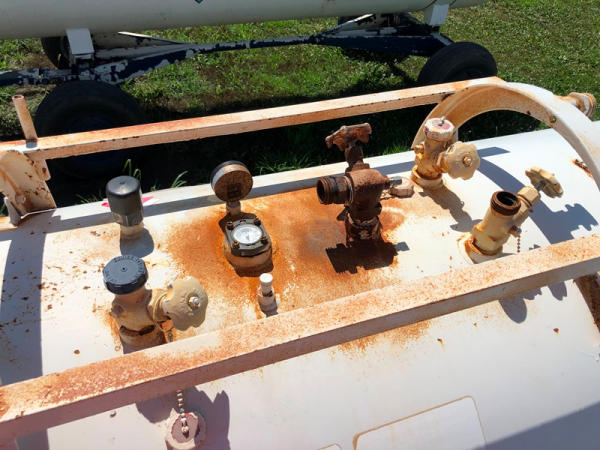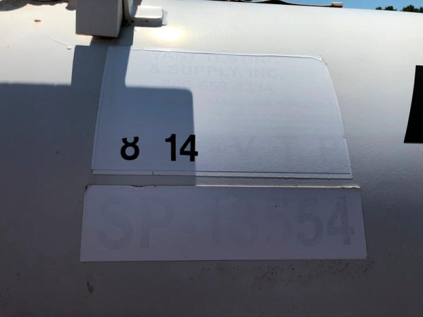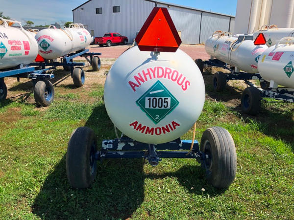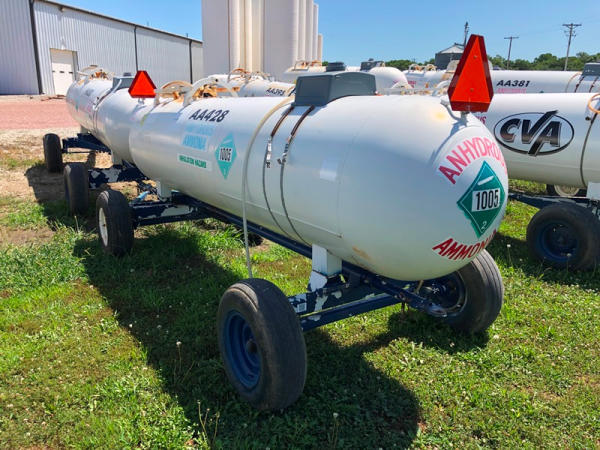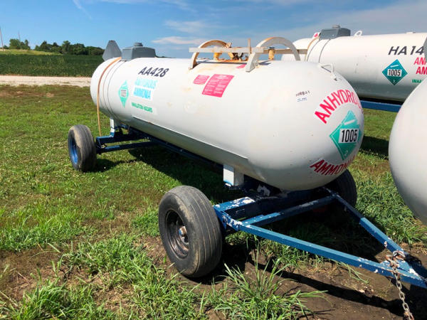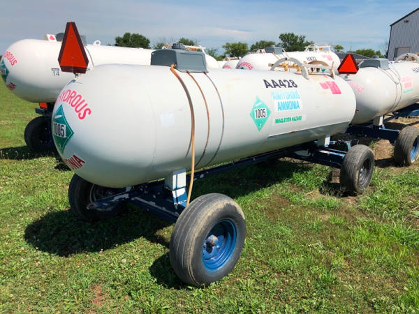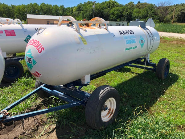 NH3 Tank (NP8821, Tank AA428), 1,000 gallon capacity, top front fill, 4 wheel gear, water tank, 11L-15 flotation tires, data plate.