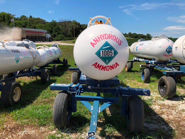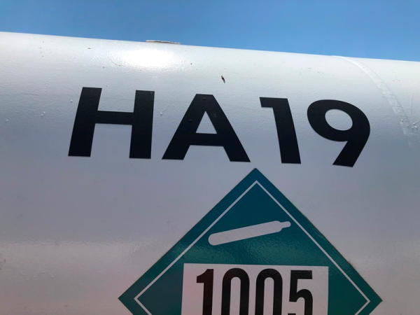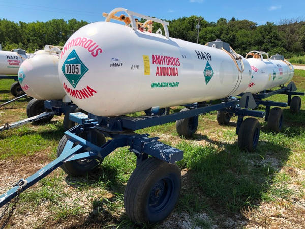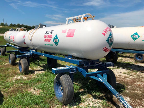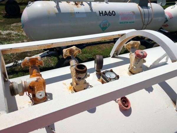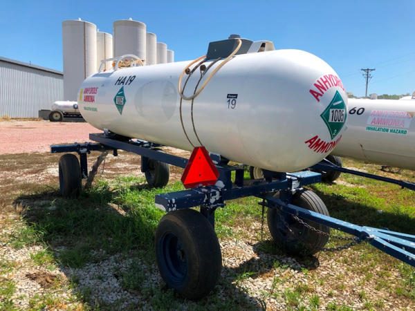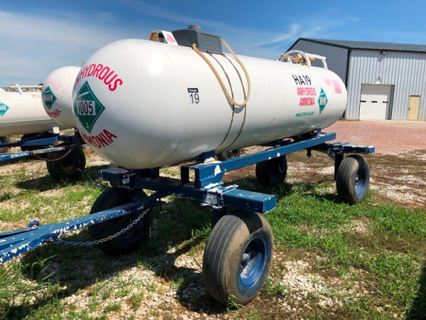 NH3 Tank (NP8827, Tank HA19), 1,000 gallon capacity, top front fill, 5th wheel gear, water tank, 11L-15 flotation tires, data plate.