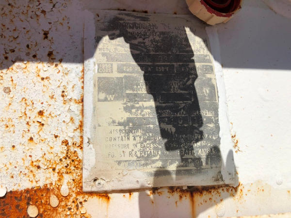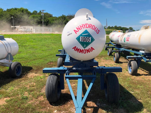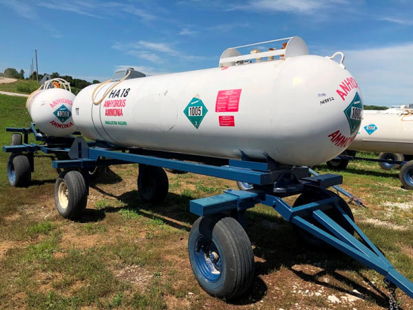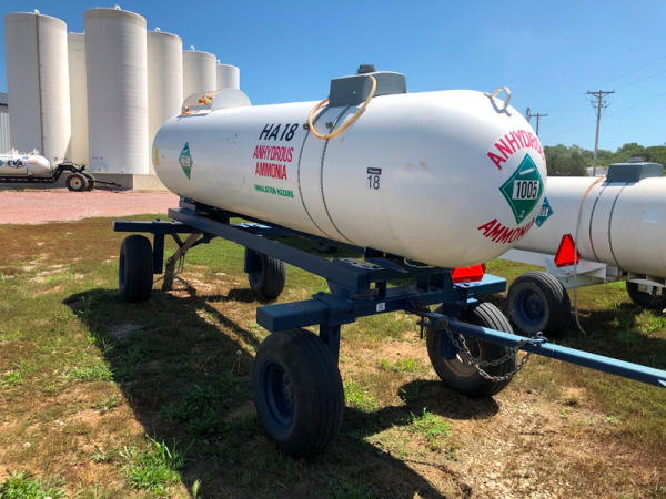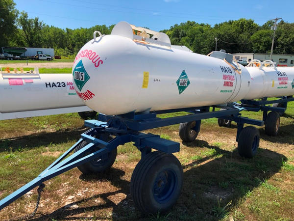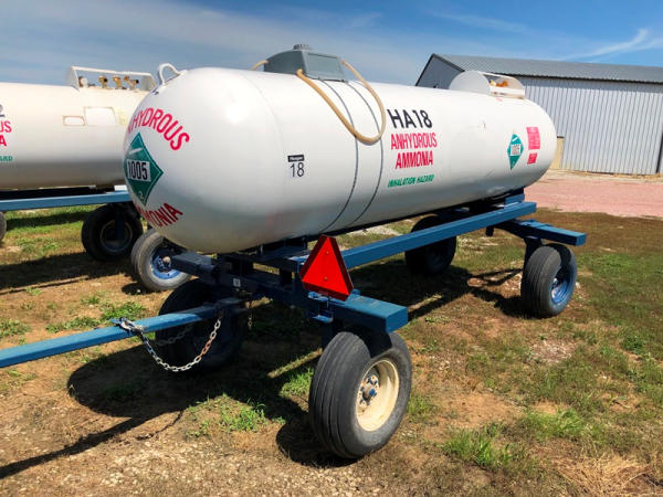 NH3 Tank (NP8832, Tank HA18), 1,000 gallon capacity, top front fill, 5th wheel gear, water tank, 11L-15 flotation tires, data plate.
