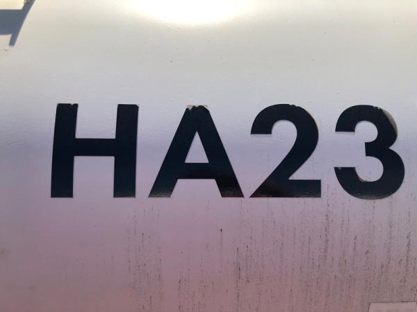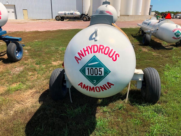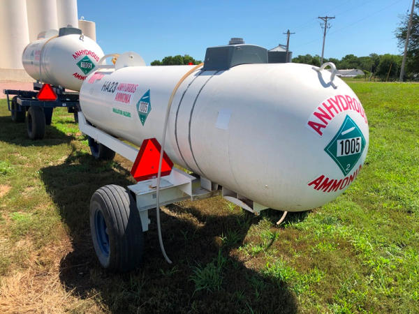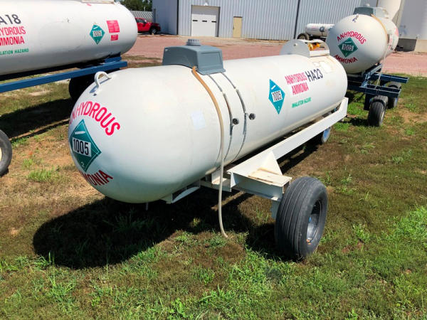 NH3 Tank (NP8834, Tank HA23), 1,000 gallon capacity, top front fill, 3 wheel gear, water tank, 11L-15 flotation tires, data plate.