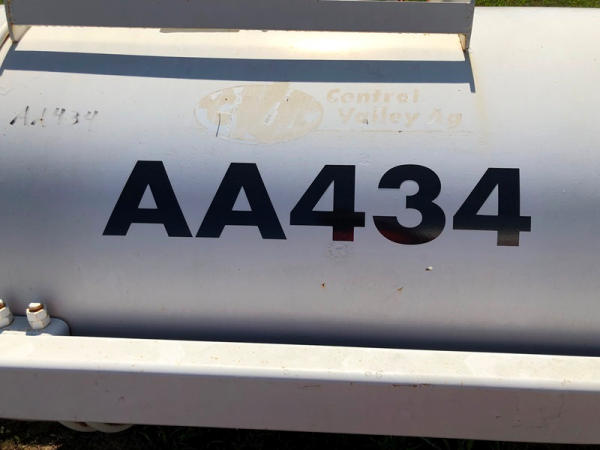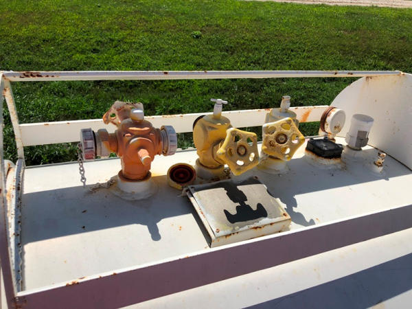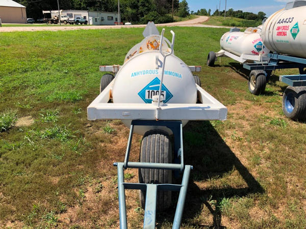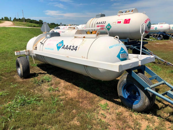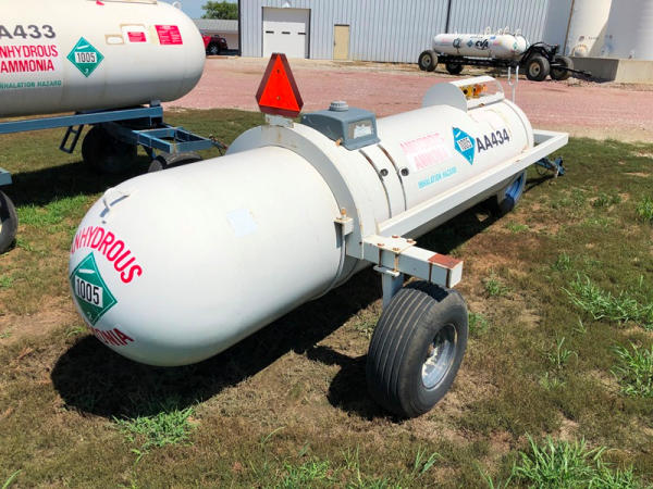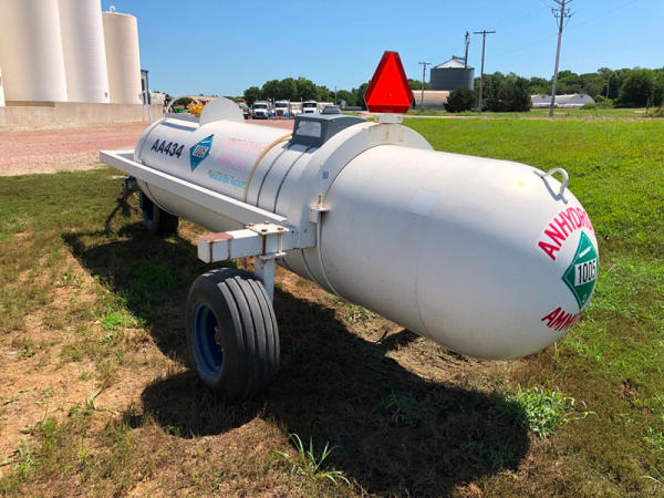 NH3 Tank (NP8836, Tank AA434), 1,000 gallon capacity, top front fill, 3 wheel gear, water tank, 11L-15 flotation tires, data plate.