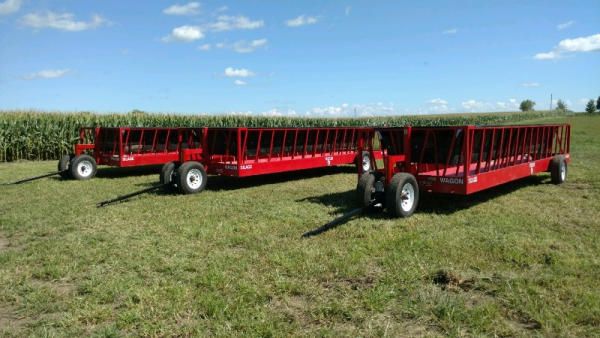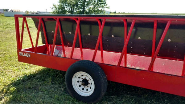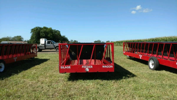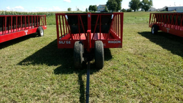 Silage 84R Wagon (ED1080), 9 months old, 8 foot X 24 feet, removable rubber/metal insert for feeding corn silage or hay, pulled less than 200 miles on all 3 wagons, 4 Ton+ corn silage capacity, all tires, 8 hole wheels and hubs were brand new with the wagons, Extendable hitch, 20 hole station, handy wagons ready to go.