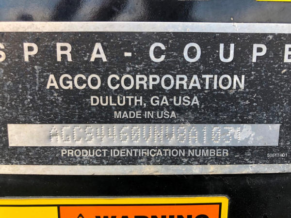 2010 Spra-Coupe 4460 Sprayer (NP8848, Unit 90), Perkins diesel engine, automatic transmission, heat, air conditioning, Am/Fm CD radio, 400 gallon poly liquid system, 80' boom, 3-way nozzle bodies, 20" spacing, 45 gallon poly side mount tank, Titan 320/85R24 tires, Raven SCS460 controller, Raven Envizio Pro monitor, shows 2,283 hours.